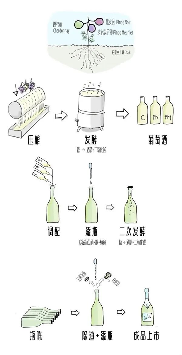 由于瓶子封闭,无法逸出的二氧化碳被迫溶解在葡萄酒中,形成了细小的气泡,使葡萄酒起泡。