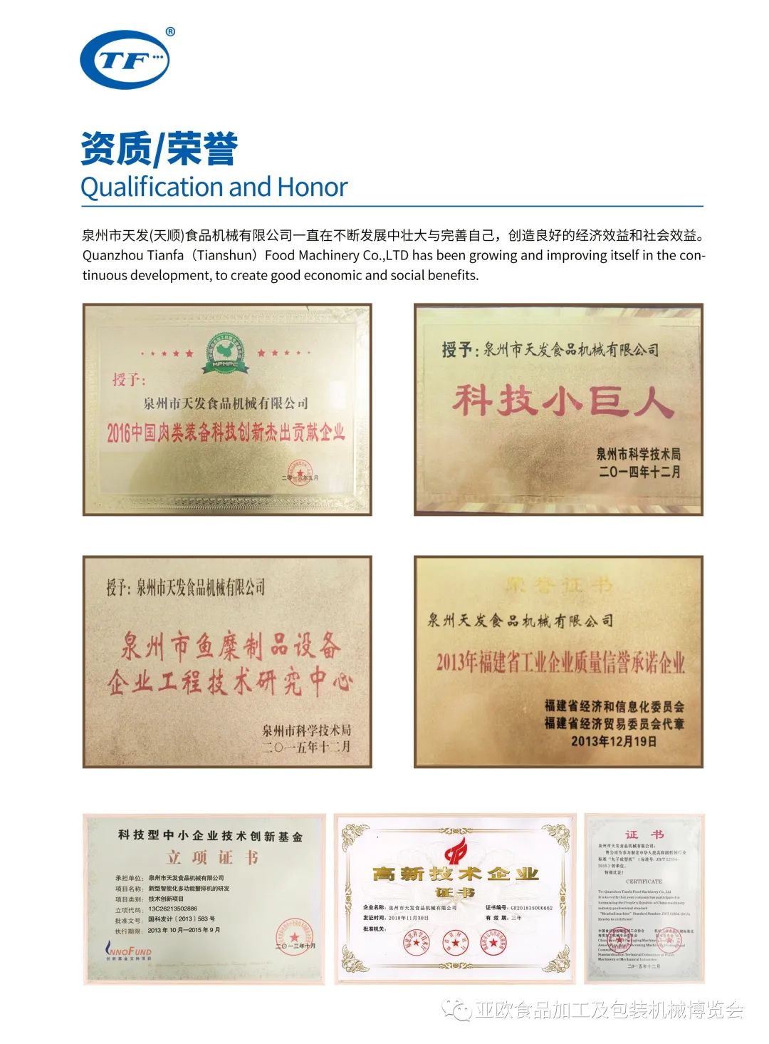 泉州市天发(天顺)食品机械有限公司-专业食品机械解决方案运营商