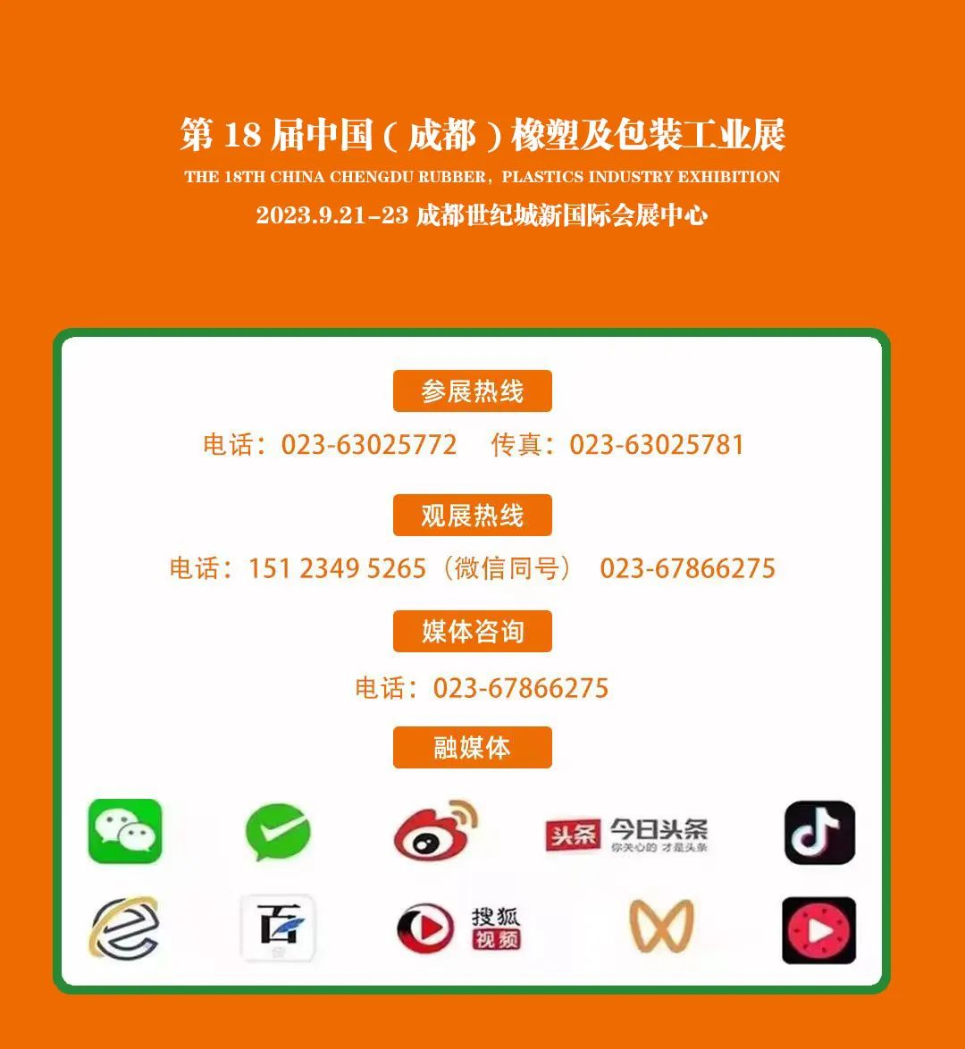 而企业如何掌握行业前沿,学习新工艺、新技术,购置优良设备,把握发展机遇?参加展会不失为一个有力宣传、突围市场的好机会!2023第18届中国(成都)橡塑及包装工业展不容错过!