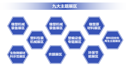展品涵盖注塑、吹塑吹瓶、挤出、自动化、回收再生、印刷机、无溶剂复合印刷机、制袋机、自动理袋机、吹膜机、分切机、检品机、流延膜生产线设备、无纺布制袋机等设备;以及各类原材料及辅助设备。