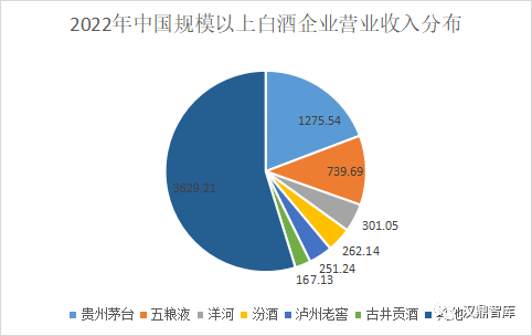 目前,中国头部白酒企业规模以上市场份额上升,企业数量下滑,产业集中度进一步提升。从2022年多家白酒上市公司发布的财务数据来看,以贵州茅台酒股份有限公司,宜宾五粮液股份有限公司、江苏洋河酒厂股份有限公司、山西杏花村汾酒厂股份有限公司、泸州老窖股份有限公司、安吉古井集团有限公司为代表的6家头部白酒企业2022年总营收合计为2,996.79亿元,占整个规模以上白酒企业总收入的45%左右。