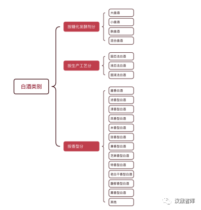 白酒的分类方式比较多,目前市场上主流的分类方式主要为以下三种:按糖化发酵剂分、按生产工艺分、按香型分。其中以香型分类的方法细分品类最为多样。具体分类情况如图下图所示: