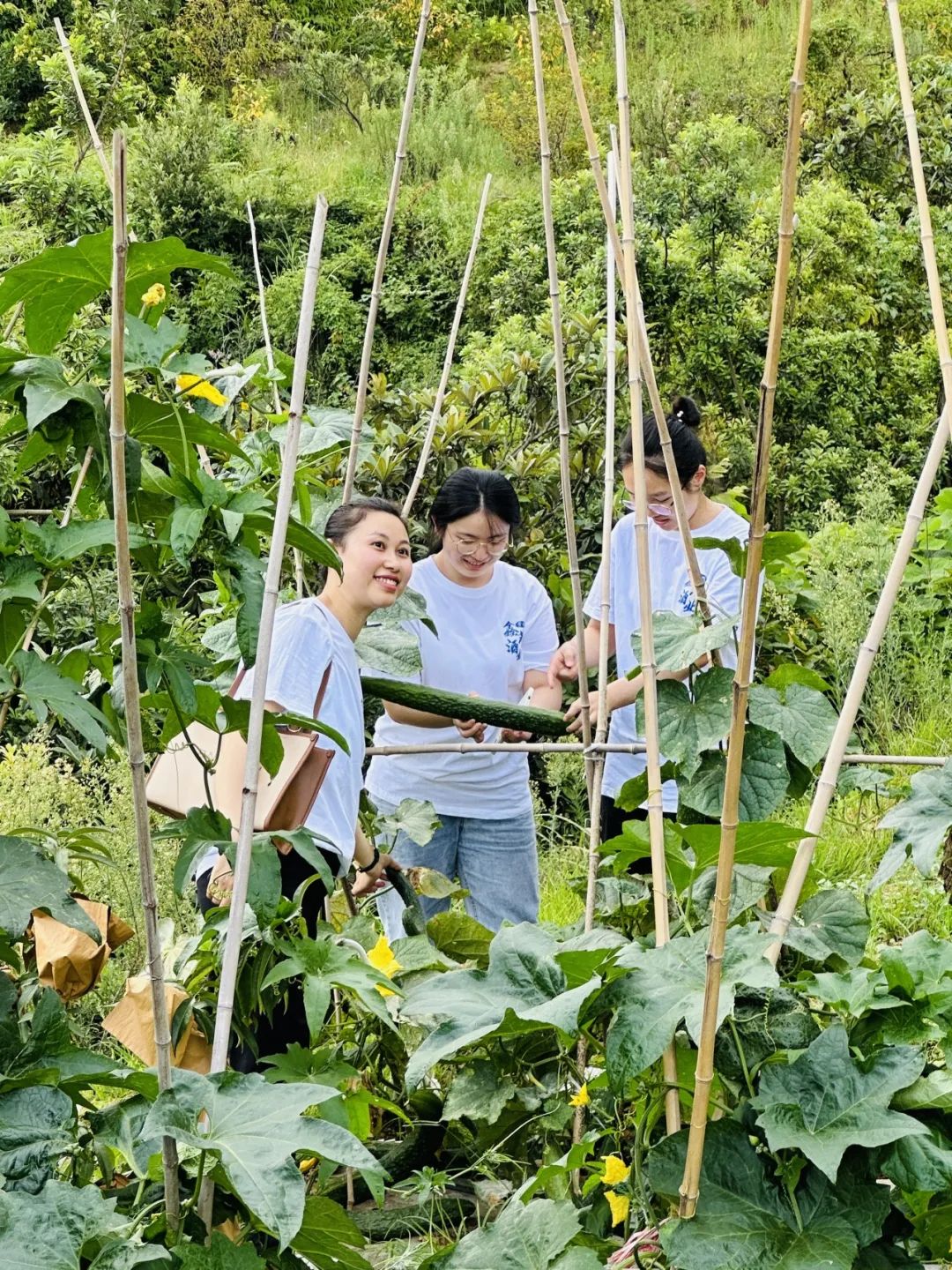 大家在山野田间采摘西瓜、桃子、蔬菜等,一起感受到秋天带给大家丰收的快乐。