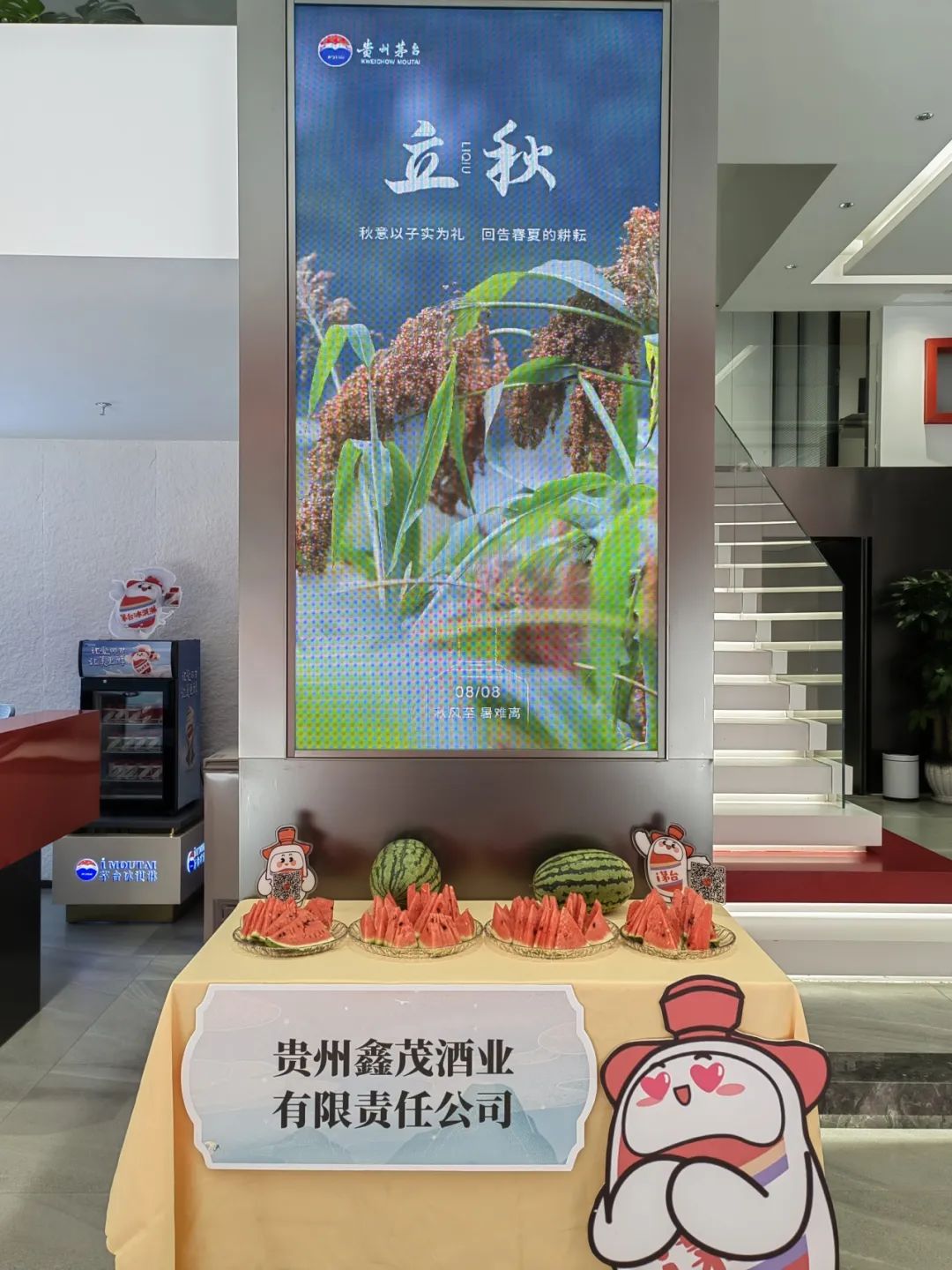 立秋节气当天,在宝山南路茅台专卖店内,还为进店的客户及路人送上我们采摘的解暑食物:西瓜,让大家在入秋之际感受到西瓜带来的香甜。