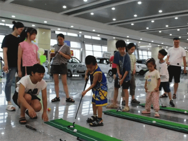 在运动体验区,不仅有射击、投壶、滚铁环等传统游戏,还有高尔夫、桌上冰壶球、桌上足球机等各类经典运动类游戏,小朋友们都化身小运动员,一个个不甘示弱,铆足劲在游戏赛场上大显身手。