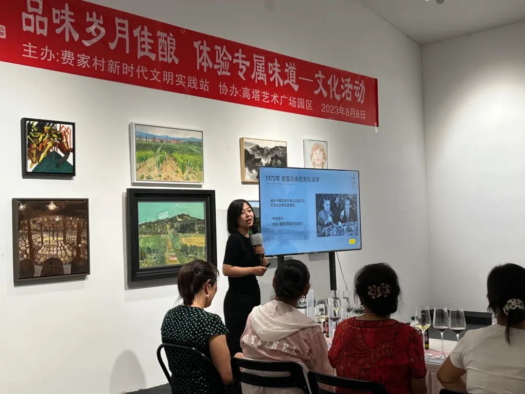2023年8月8日,在费家村新时代文明实践站和高塔艺术广场园区组织下,数十位域内民众怀着新奇的心情,走进华夏思想者生活艺术馆,感受艺术之美,聆听葡萄酒文化的久远故事,领略了生活与艺术的美好融合。