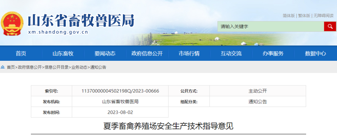 地方博览 | 山东发布夏季畜禽养殖场安全生产技术指导意见