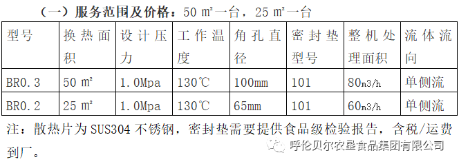 (一)服务名称:呼伦贝尔合适佳食品有限公司关于板式换热器采购项目