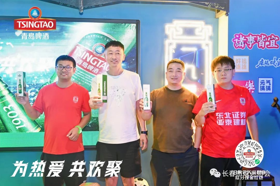8月8日恰逢全民健身日,长春亚泰客场挑战梅州客家,本场是长春亚泰远赴客场比赛,青岛啤酒携手长春市球迷协会共同为球迷打造观赛第二现场!球迷观赛第二现场位于长春这有山商场1903小酒馆!本赛季青岛啤酒为亚泰球迷送上包括主场的诸多福利,本次携手长春市球迷协会为广大亚泰球迷创造第二现场观赛体验!虽然最终长春亚泰不敌梅州客家,但青岛啤酒在第二赛场也为广大球迷创造了许多互动游戏并颁发奖品!在此,长春市球迷协会由衷感谢青岛啤酒!
