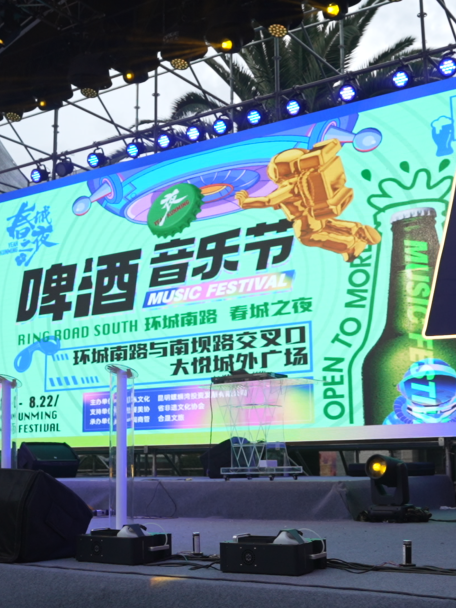 当晚,“春城之夜”启幕仪式的预热活动——首届啤酒音乐节也同步启动,在长达26天的集中爆发性线下活动中,主办方还将酷爽的青岛啤酒与地道的淄博烧烤带到了春城,伴随着乐队劲歌与DJ电音,为市民群众带来了一场丰富有趣的狂欢。