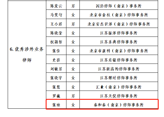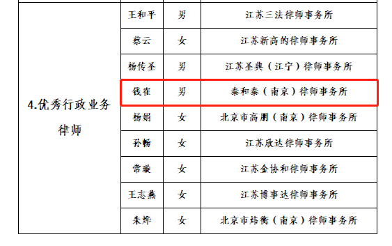 为进一步在南京市律师行业中弘扬正气、鼓励先进和树立典型,促进南京市律师行业健康发展,市律协决定对2020-2022年度为行业发展和协会建设作出积极贡献的先进集体和先进个人进行表彰。经申报评定,我所吾采灵律师荣获“优秀刑事律师”,张迪律师荣获“优秀涉外业务律师”,钱隺律师荣获“优秀行政业务律师”。