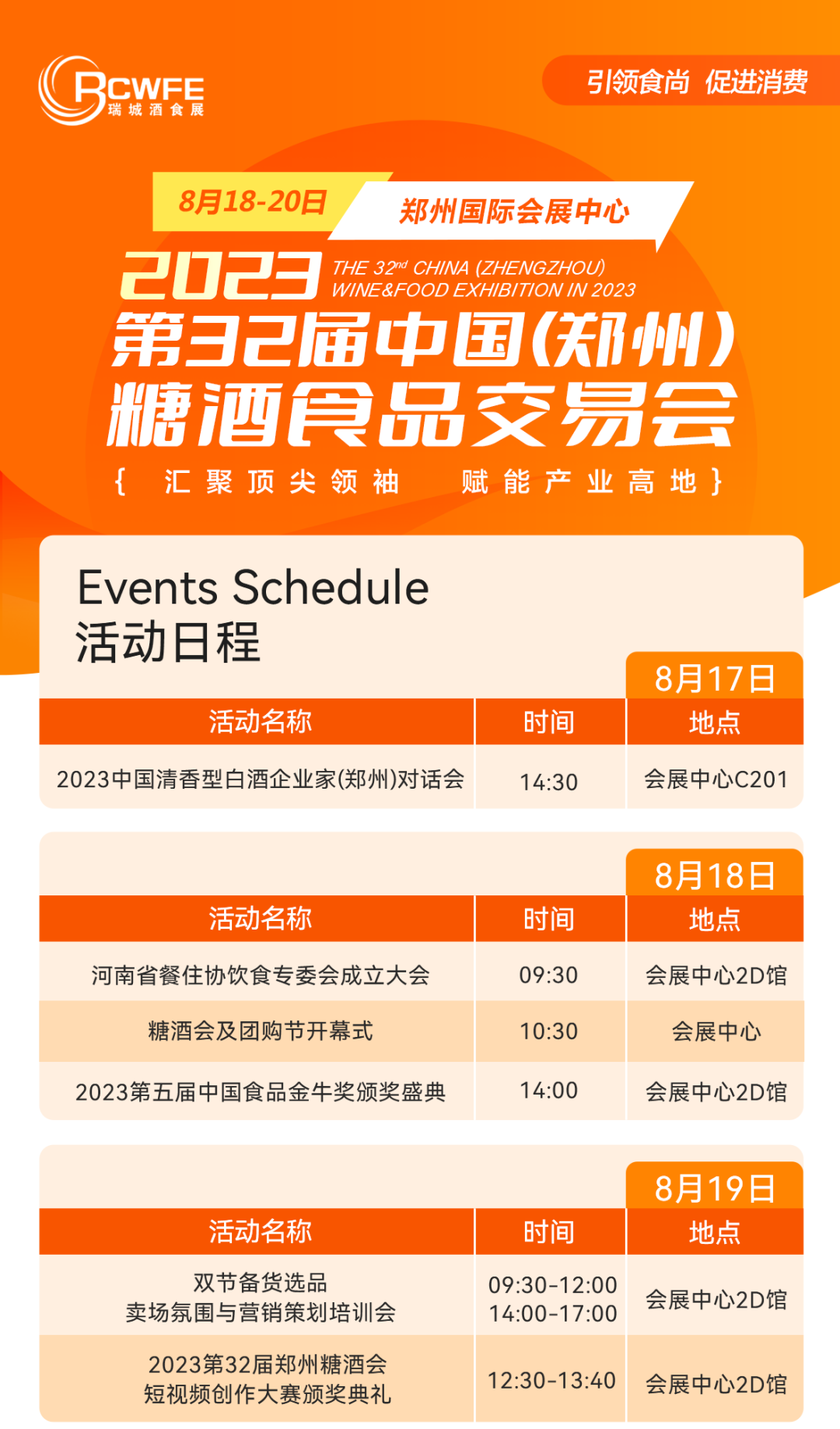 8月18-20日,除了展览交易,第32届郑州糖酒会期间,各项精彩活动也将次第登场。