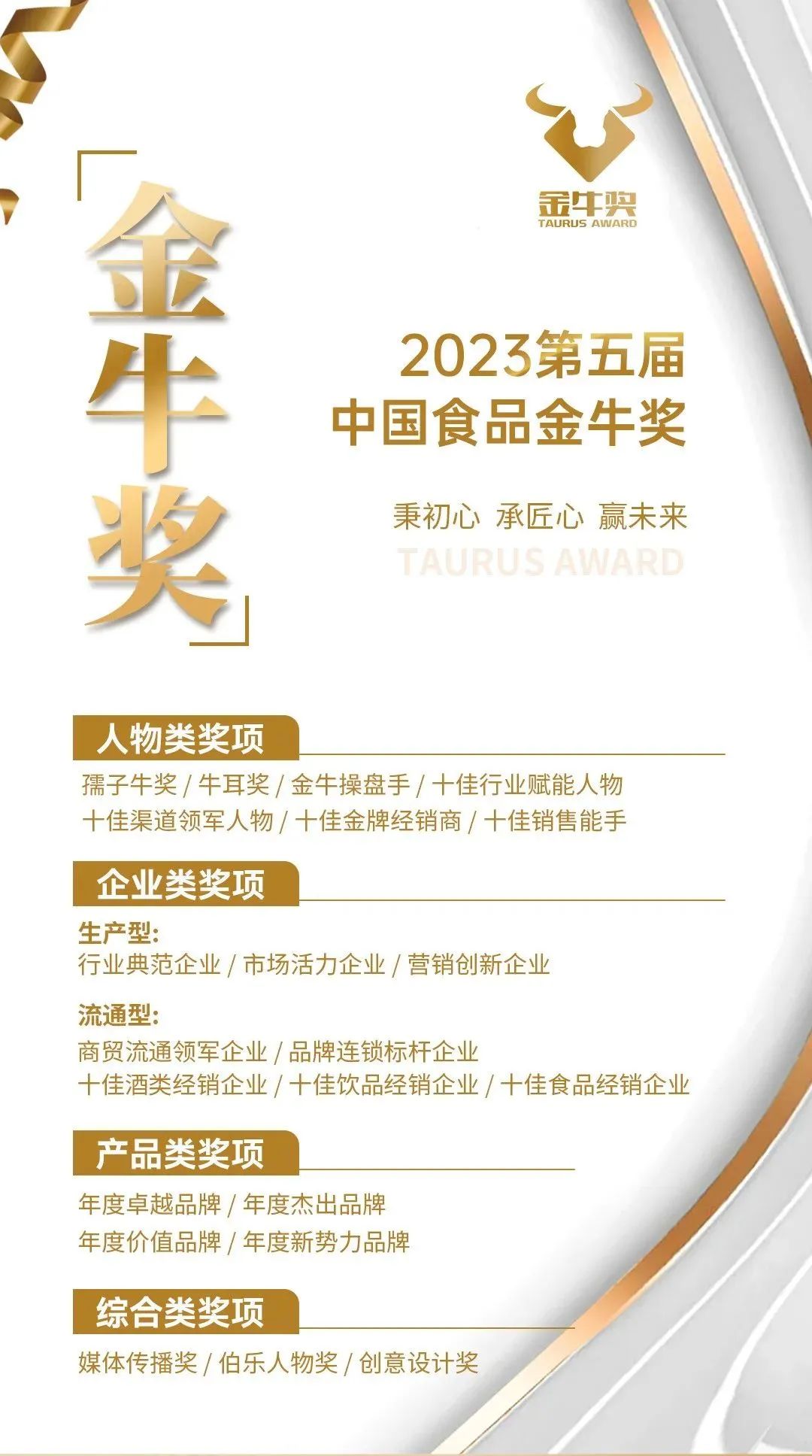 8月19日,第五届中国食品金牛奖颁奖盛典将在展会期间隆重举办,数万食品人将共同见证荣耀时刻。据悉,本届金牛奖共设置了人物类、企业类、产品类、综合类四大类22个奖项。与往届相比,此次奖项设置更加丰富,更为细分、指向性更强。