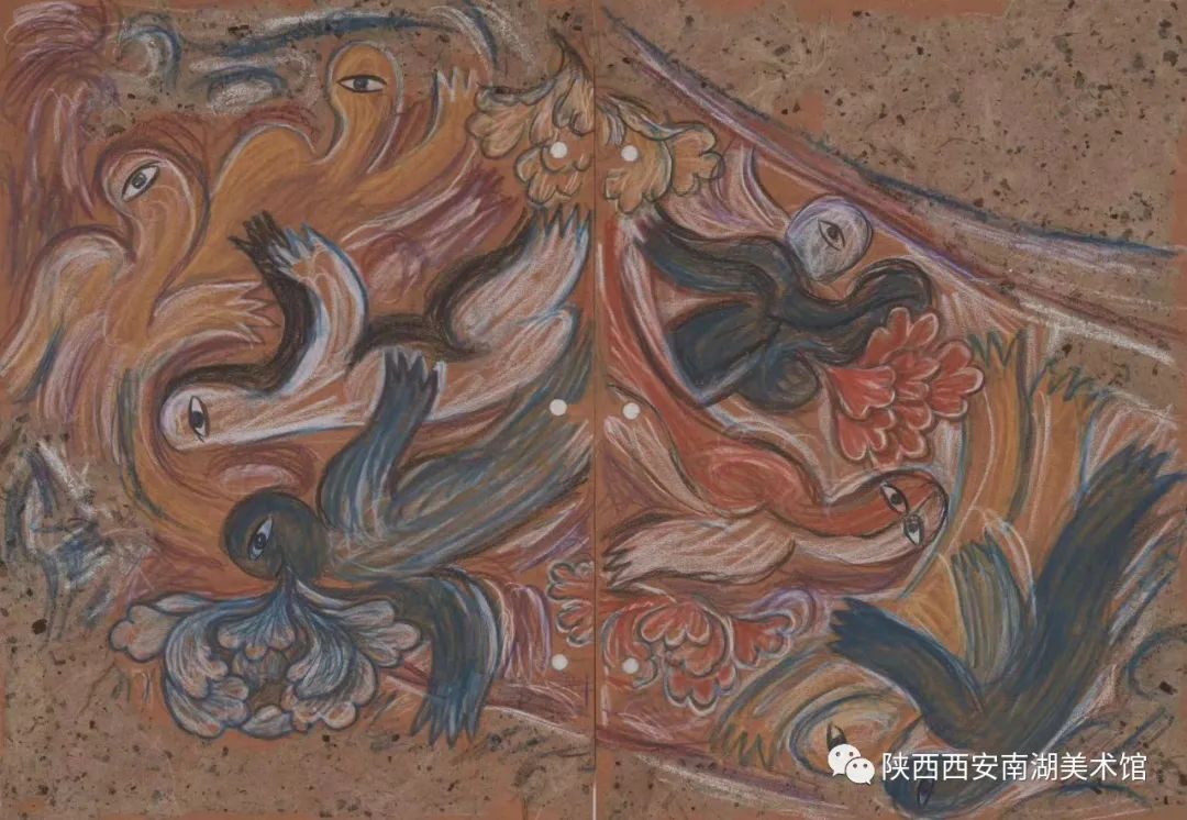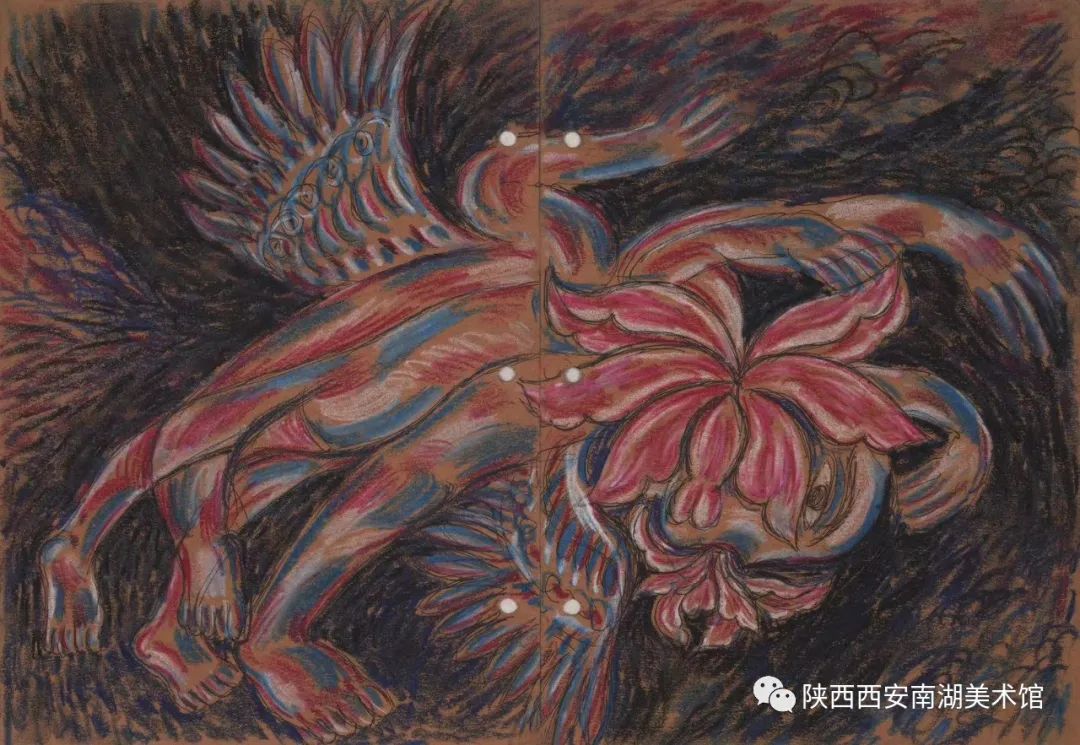 我也曾疑问过,老家陕北缺水,少有种莲花的,为何剪纸刺绣木石雕刻,庙宇家园里到处都盛开着莲花?直至我看见莲枝上生有树叶,莲蓬上生出小孩,连坐上端坐着神灵……方才明白它是心花,是身花,是生命之花,直至看见了漫山遍野、无孔不入的大水。我就发了愿心,让不谢的莲花开遍我经常行走的每一个空间。
