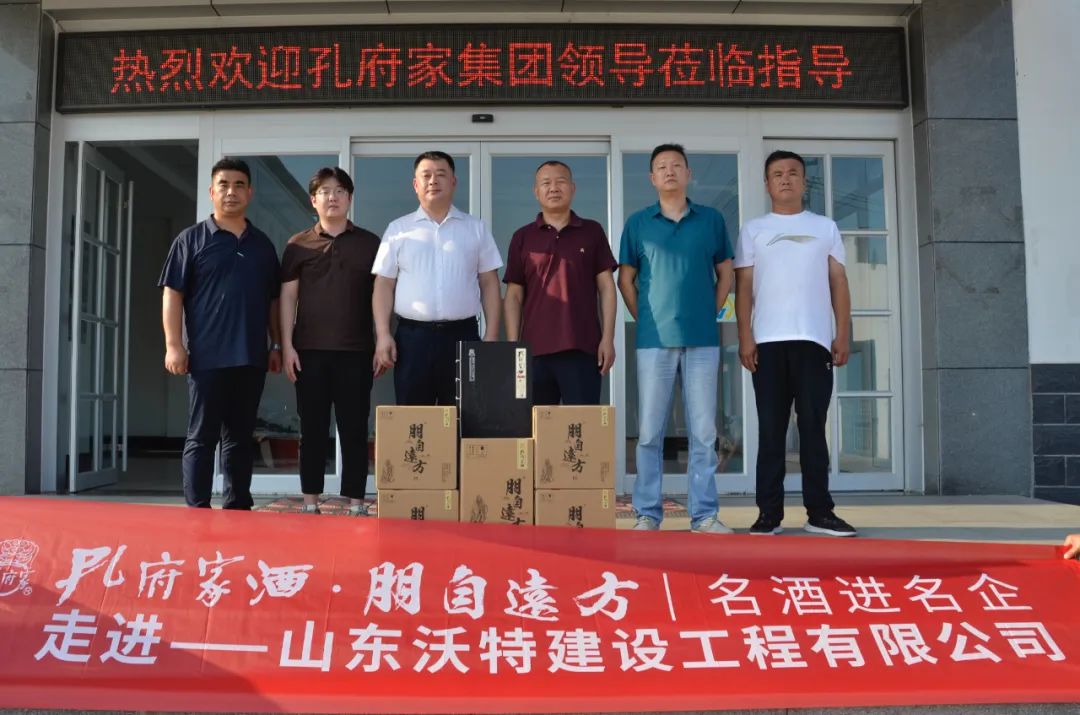 为加强企业间交流,增进友好关系,更好促进企业跨界合作,8月4日,孔府家酒业营销公司总经理李艳超、销售管理中心总监代民、济宁北大区总监颜丙利一行走进山东沃特建设工程有限公司,开展“名酒进名企”交流活动,共商合作,共话发展。山东沃特建设工程有限公司董事长颜波、业务经理韩若雷等接待了孔府家酒业一行。山东沃特建设工程有限公司始建于2003年,坐落在美丽的东方圣城,孔子故里——曲阜。公司拥有钢结构工程、古建筑工程、环保工程、建筑机电安装工程4个壹级资质、市政公用工程总承包、建筑幕墙门窗、消防工程、装饰装修工程4个贰级资质;建筑施工总承包、水利水电工程施工总承包、机电设备安装工程总承包、城市道路照明工程4个叁级资质,合计12项国家资质,是一家设计和施工为一体的综合性工程公司。