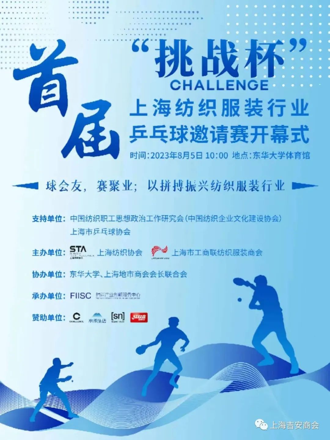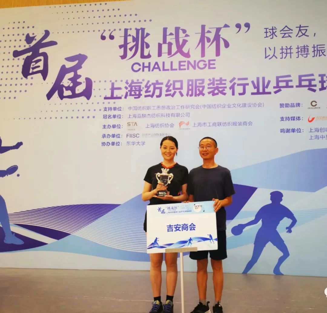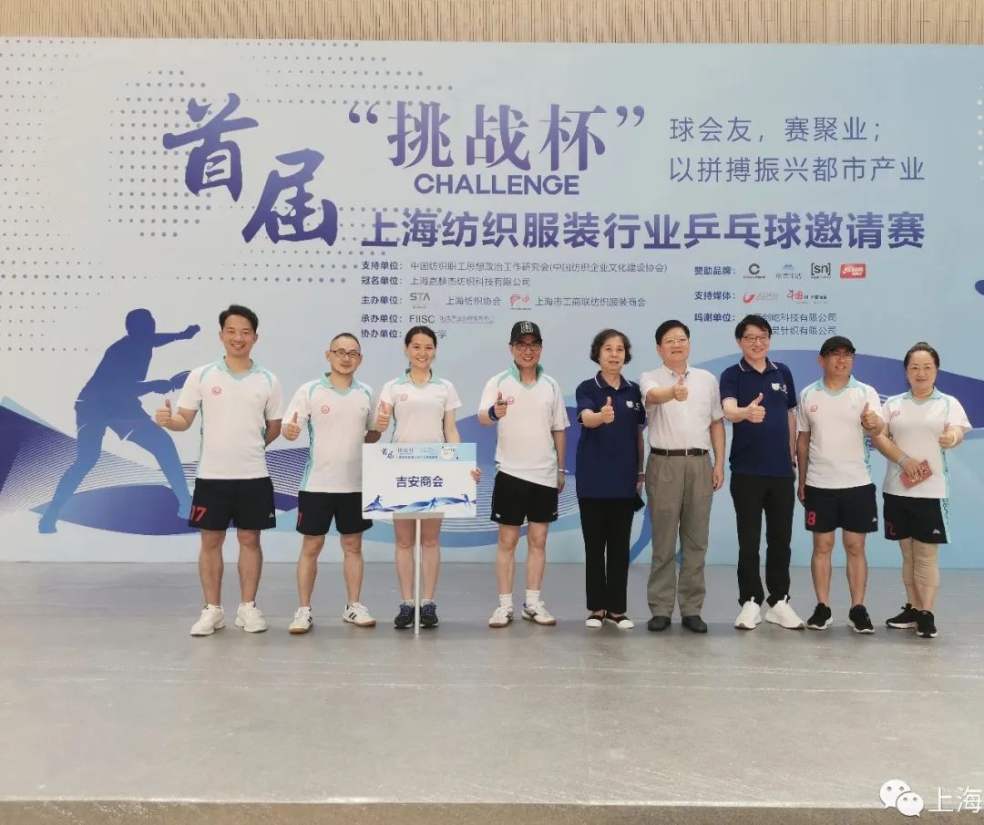 8月5日至6日我会组团参加由上海纺织协会、上海市工商联纺织服装商会主办,东华大学协办,时尚产业创新服务中心承办,中国纺织职工思想政治工作研究会(中国纺织企业文化建设协会)支持,上海嘉麟杰纺织科技有限公司全资资助的首届“挑战杯”乒乓球邀请赛。比赛在上海东华大学体育馆顺利举办。