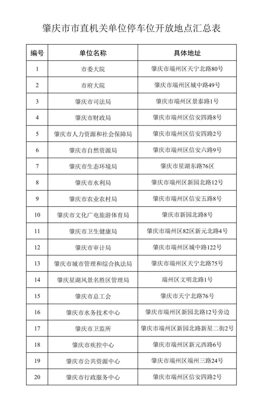 肇庆市市直机关单位停车位