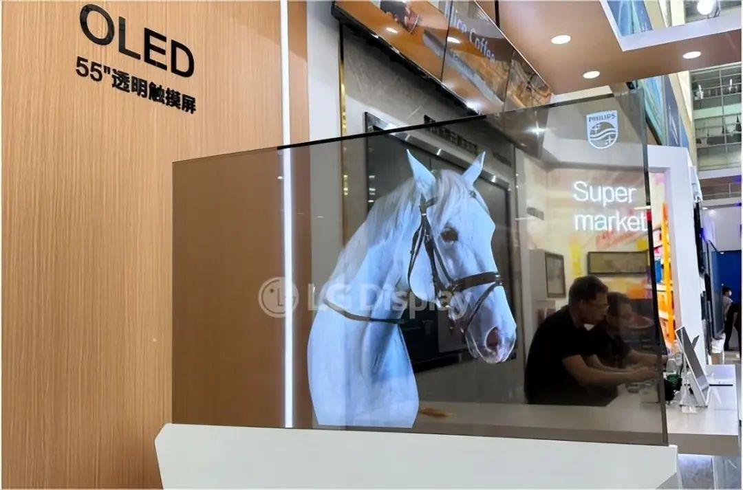 30英寸透明OLED可以作为显示器使用,比如酒店前台,顾客可以在浏览信息的同时,与服务人员面对面交流,提升服务体验。