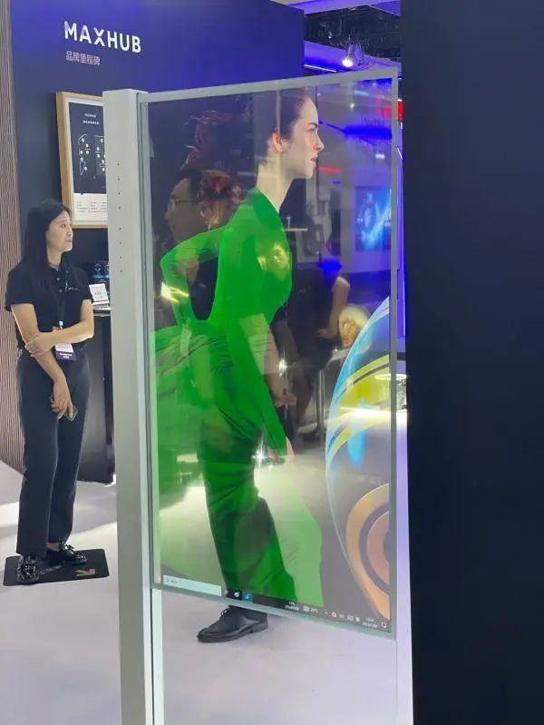 诸如55英寸透明OLED竖屏、30英寸透明OLED、55英寸透明触摸屏以及55英寸立式箱柜透明OLED等产品纷纷亮相,承担着产品展示、信息导览等各种功能。