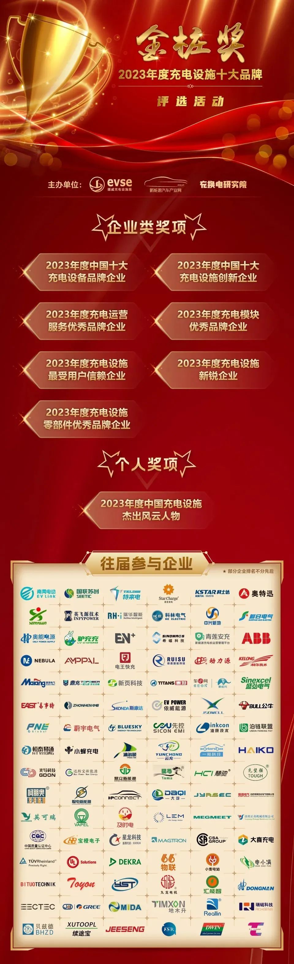 充电设施“金桩奖”是一项表彰我国充电技术发展成果的年度奖项,旨在为充电设施行业发展树立标杆企业、为行业发展决策提供思路和方向、为产业资本提供参考、增进充电设施产业上中下游产业链之间的交流合作、树立优秀成功的领导者形象,促进我国充电基础设施建设发展,已经成为我国充电设施领域参与企业数量多、含金量高、影响力大的奖项。2023年度“金桩奖”——中国充电设施十大品牌颁奖盛典将于8月29日在上海举办,荣誉名单届时揭晓,敬请期待!