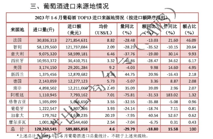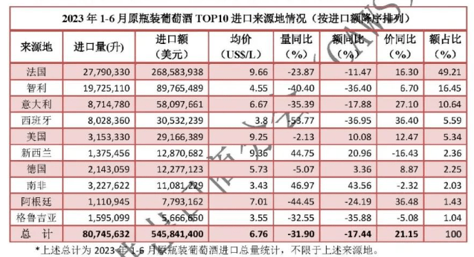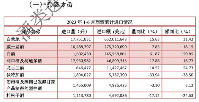 近日,中国食品土畜进出口商会酒类进出口商分会发布了2023年1-6月进口酒类市场情况(下面简称“报告”)。数据显示,截止目前进口酒市场有所恢复,额增量减。不同酒品类之间进口量额呈现此升彼降态势。