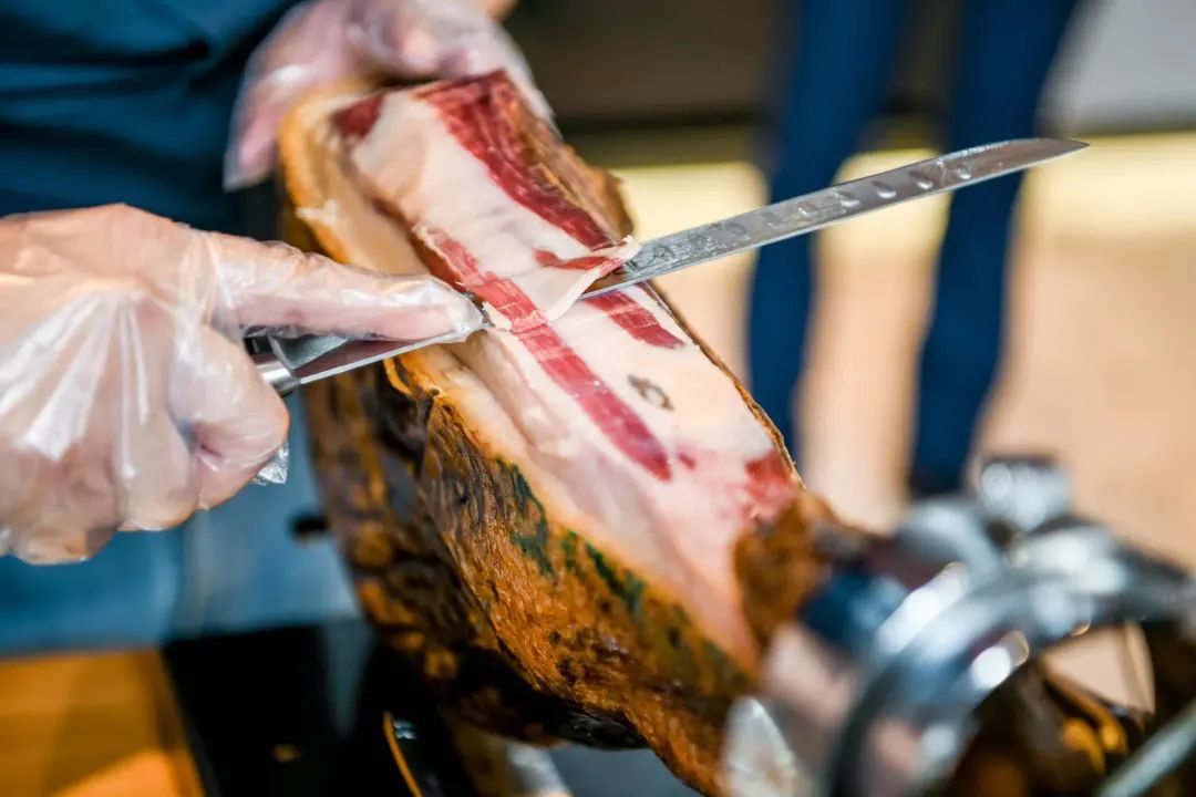 其中包括火腿中的“爱马仕”5J 橡果饲养100%纯种伊比利亚黑猪后腿!并且现场将会有专业的火腿切片师进行开腿仪式,为您手工切片,让您品尝到最新鲜、有温度的火腿切片。