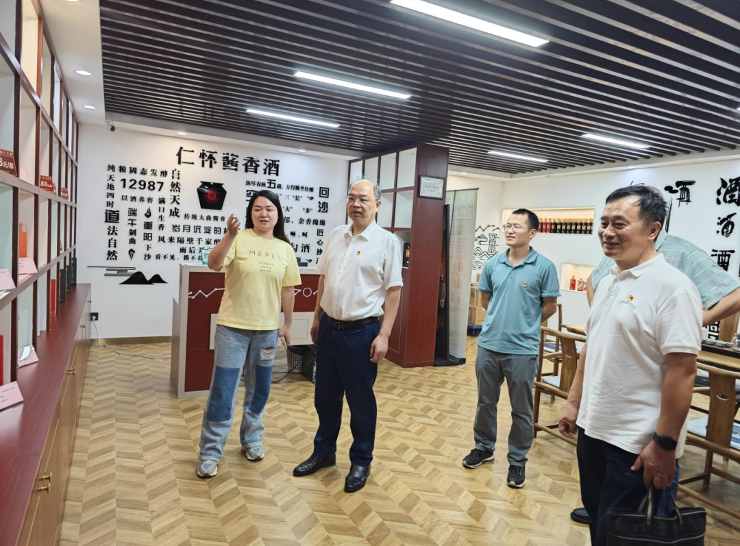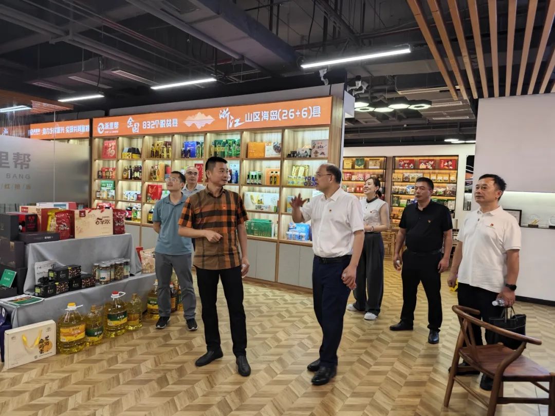 萧山粮食购销公司一行参观了位于农都城市厨房的仁怀酱香酒道馆、浙里帮共富馆,了解了酒类、对口帮扶地区农副产品的经营销售模式。
