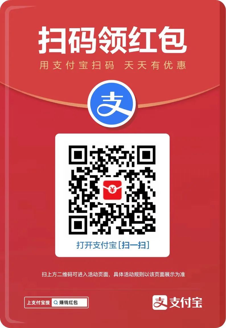 支付宝发福利大红包,领取后可用于实体店买早餐、香烟、槟榔、小菜、水果、饮料、公交扫码支付抵扣,每天可领用一次: