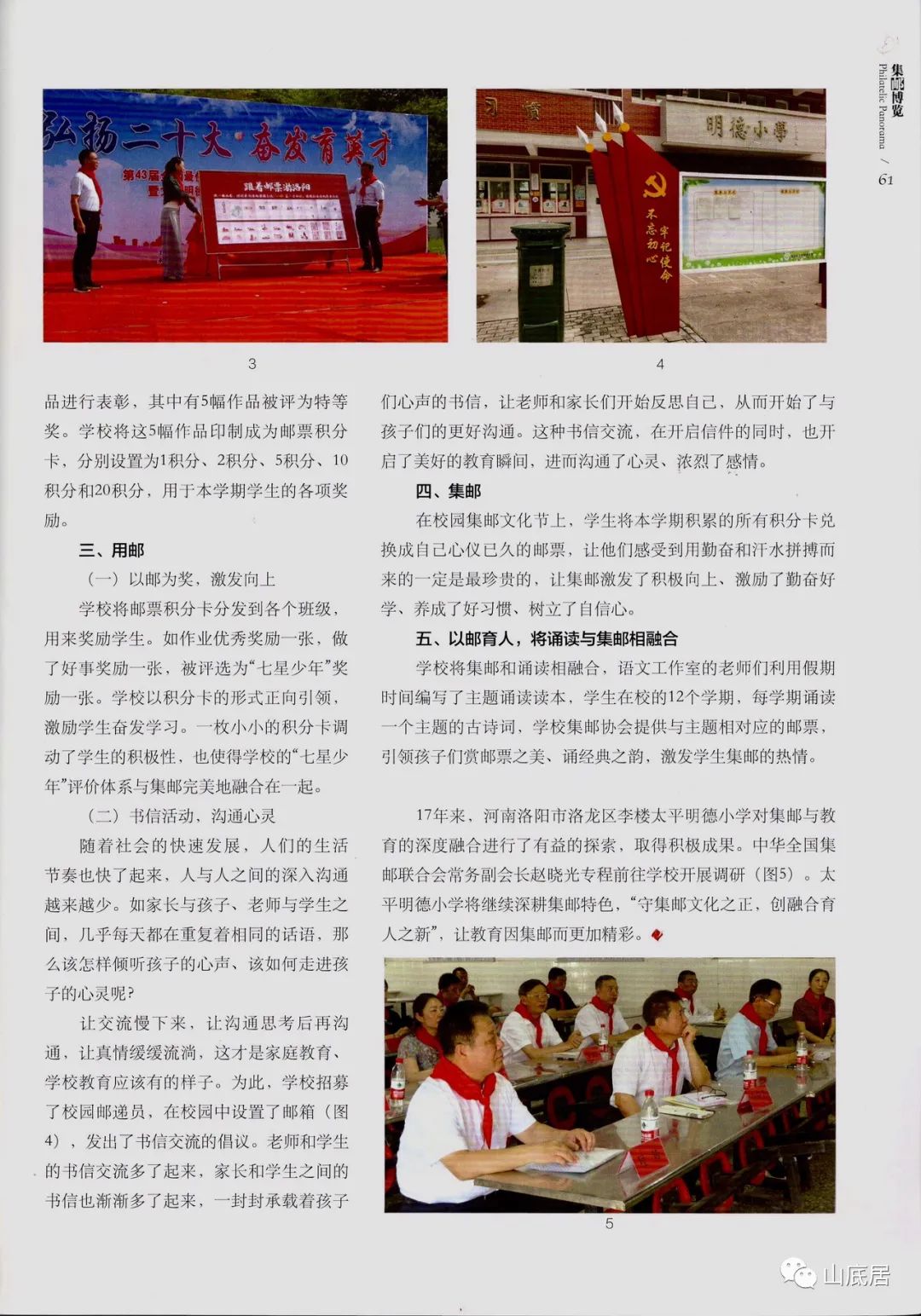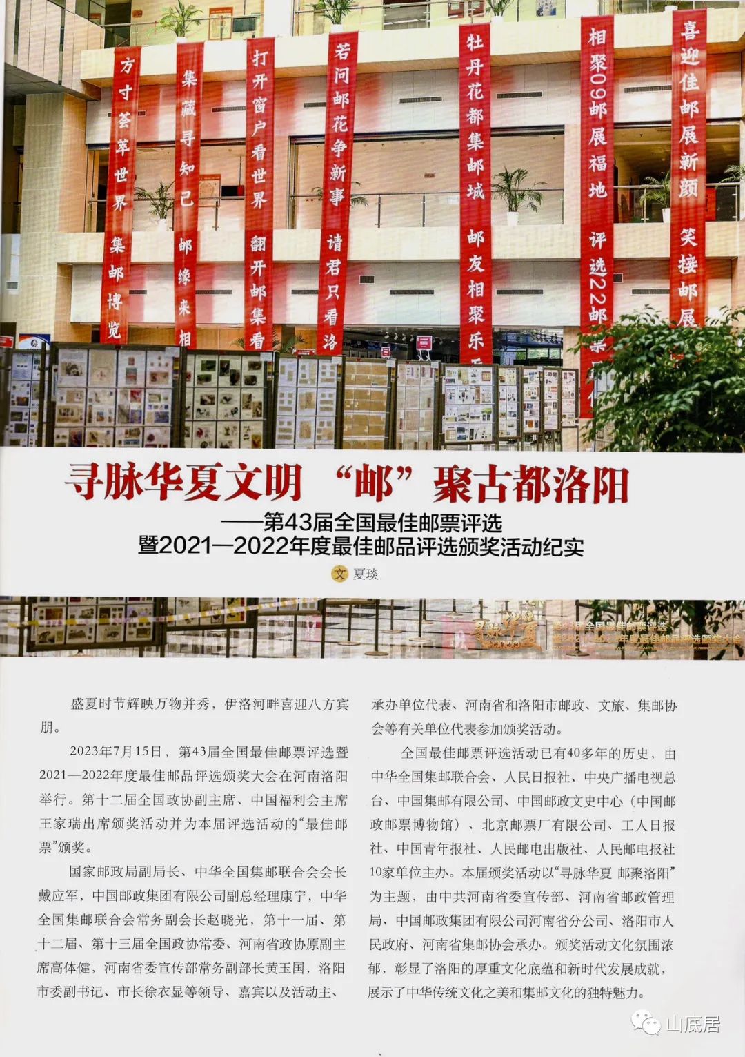 1、新出2023年第8期《集邮博览》中,刊出3篇有关洛阳的文章,其中有一篇文章的标题还上了封面。2-5、夏琰文章《寻脉华夏文明 “邮”聚古都洛阳——第43届全国最佳邮票评选暨2021-2022年度最佳邮品评选颁奖活动纪实》。6-7、宋长海、杨志军文章《守集邮之化之正 创融合育人之新——记“全国青少年集邮活动示范基地”河南洛阳市洛龙区李楼太平明德小学集邮活动》。8、石灵学文章《河南洛阳太平明德小学唱响《集邮歌》。