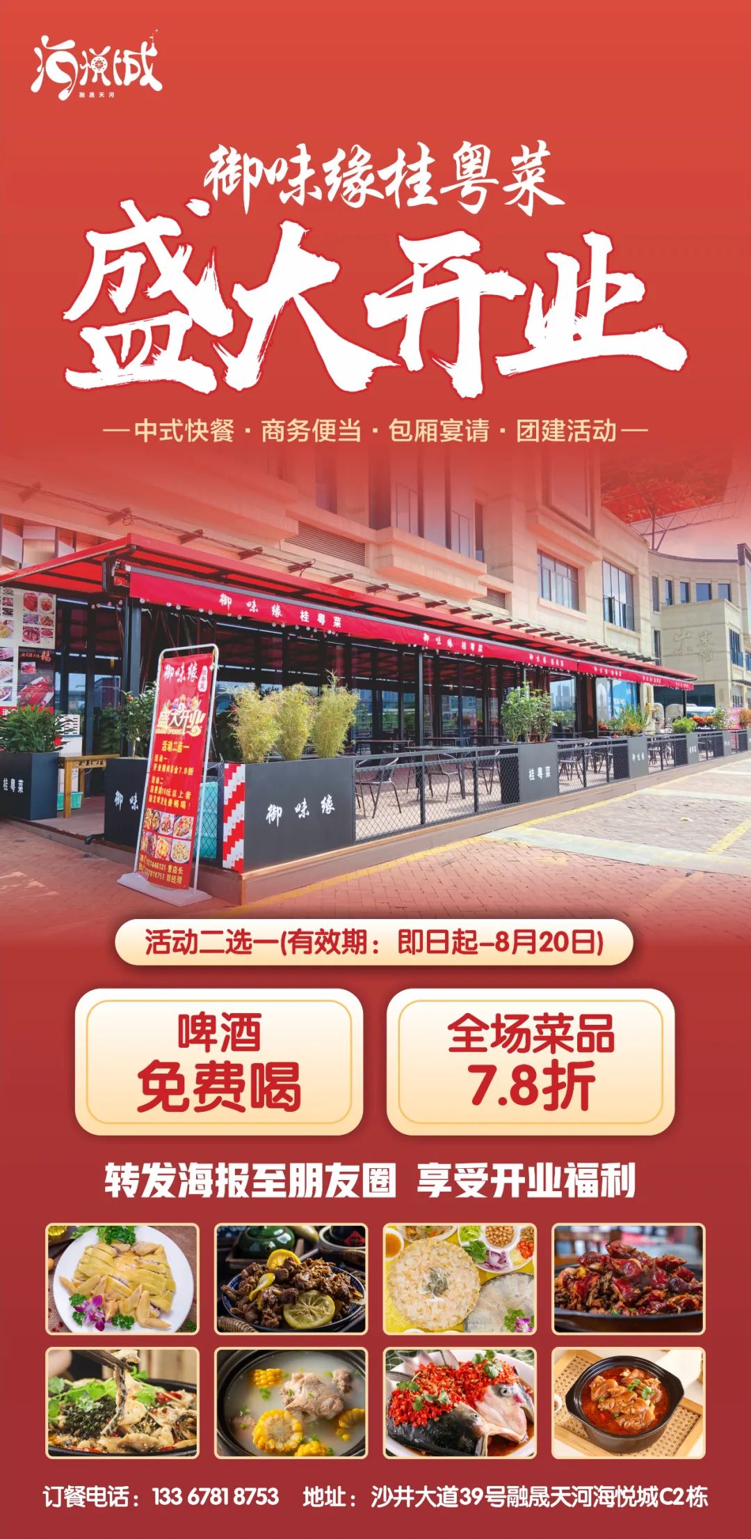 【新店开业】御味缘桂粤菜,啤酒免费喝全场菜品7.8折!