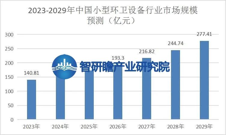 预测,2029年中国小型环卫设备行业市场规模277.41亿元。2023-2029年中国小型环卫设备行业市场规模预测如下: