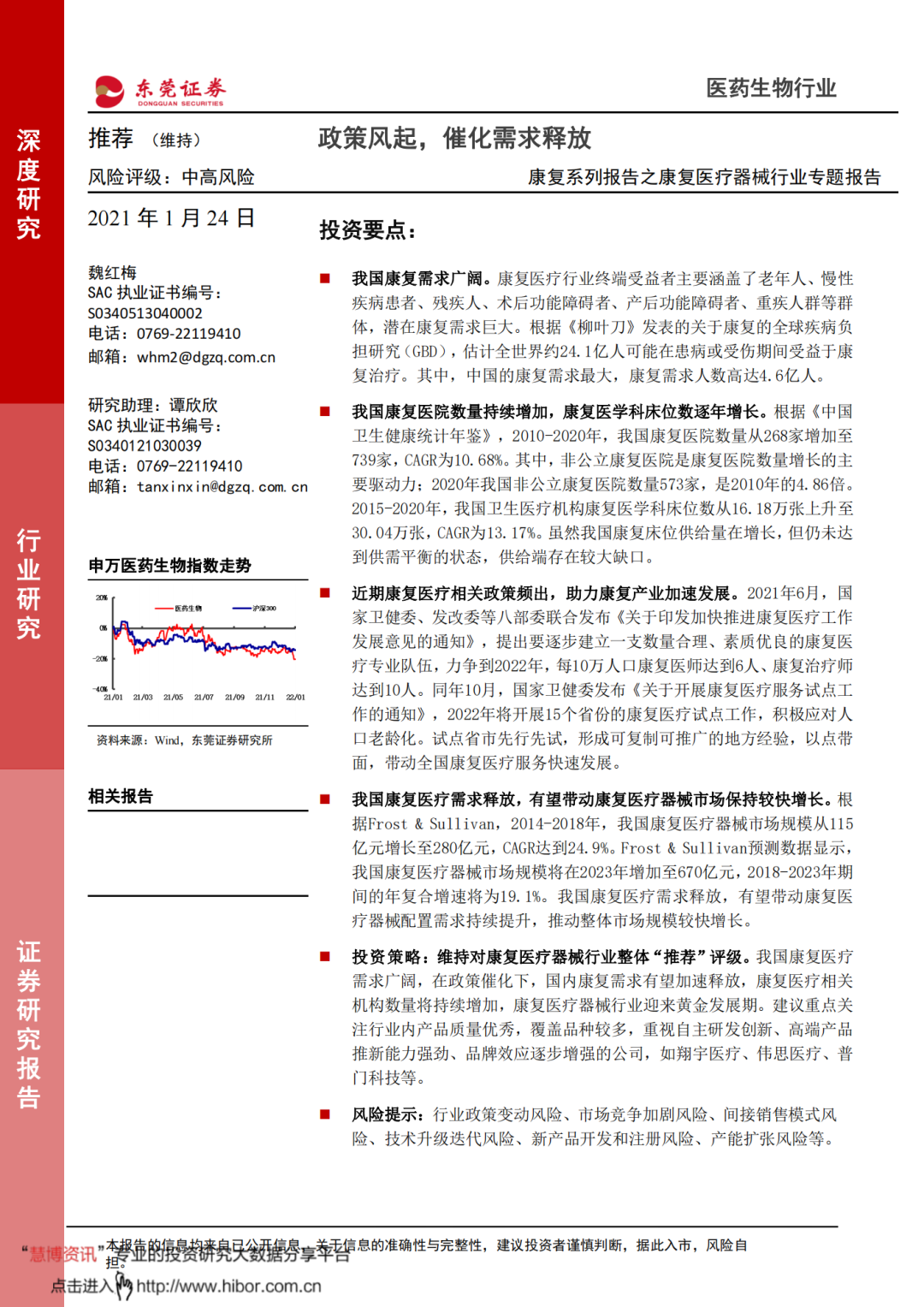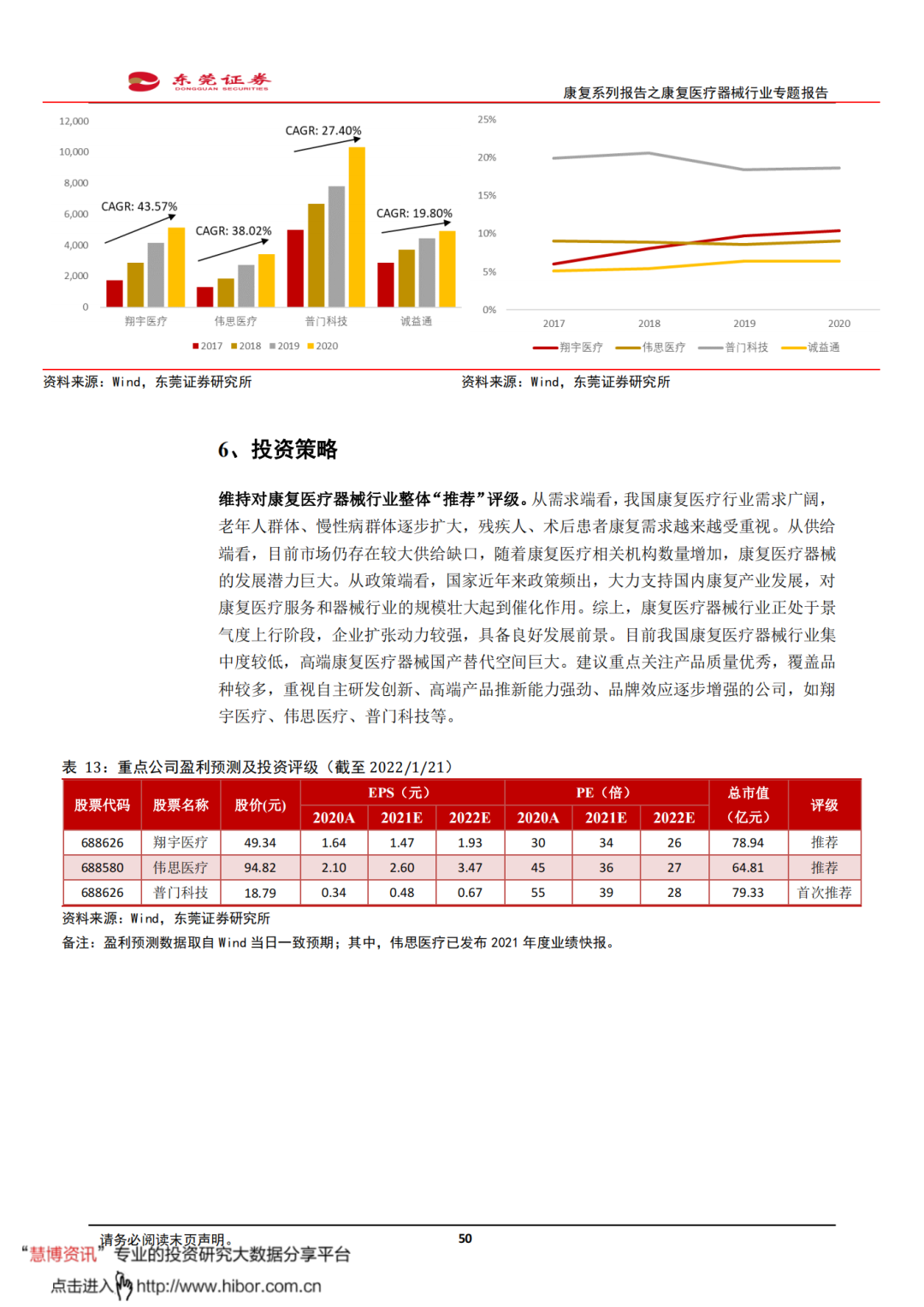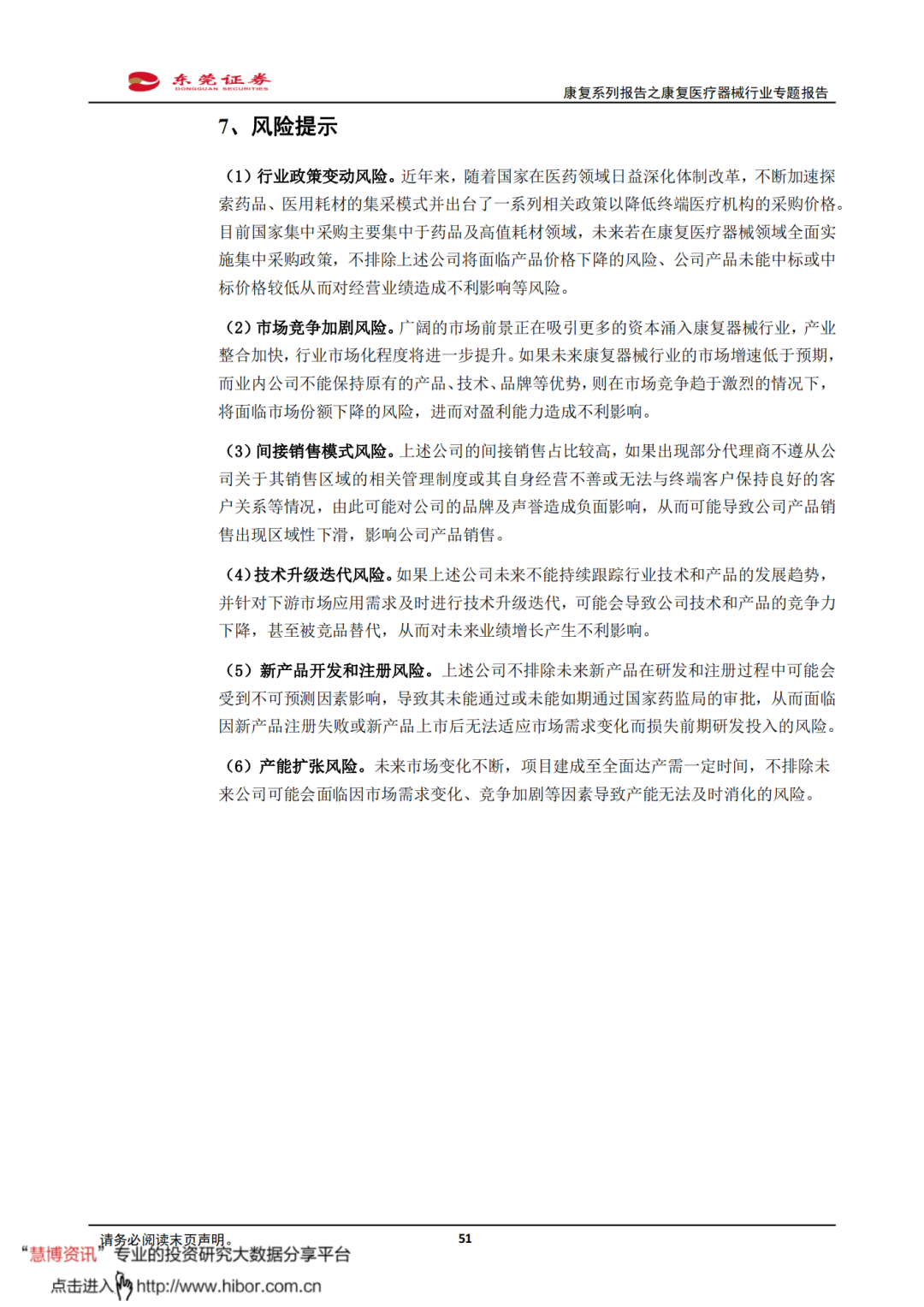 ◼ 风险提示:行业政策变动风险、市场竞争加剧风险、间接销售模式风险、技术升级迭代风险、新产品开发和注册风险、产能扩张风险等。
