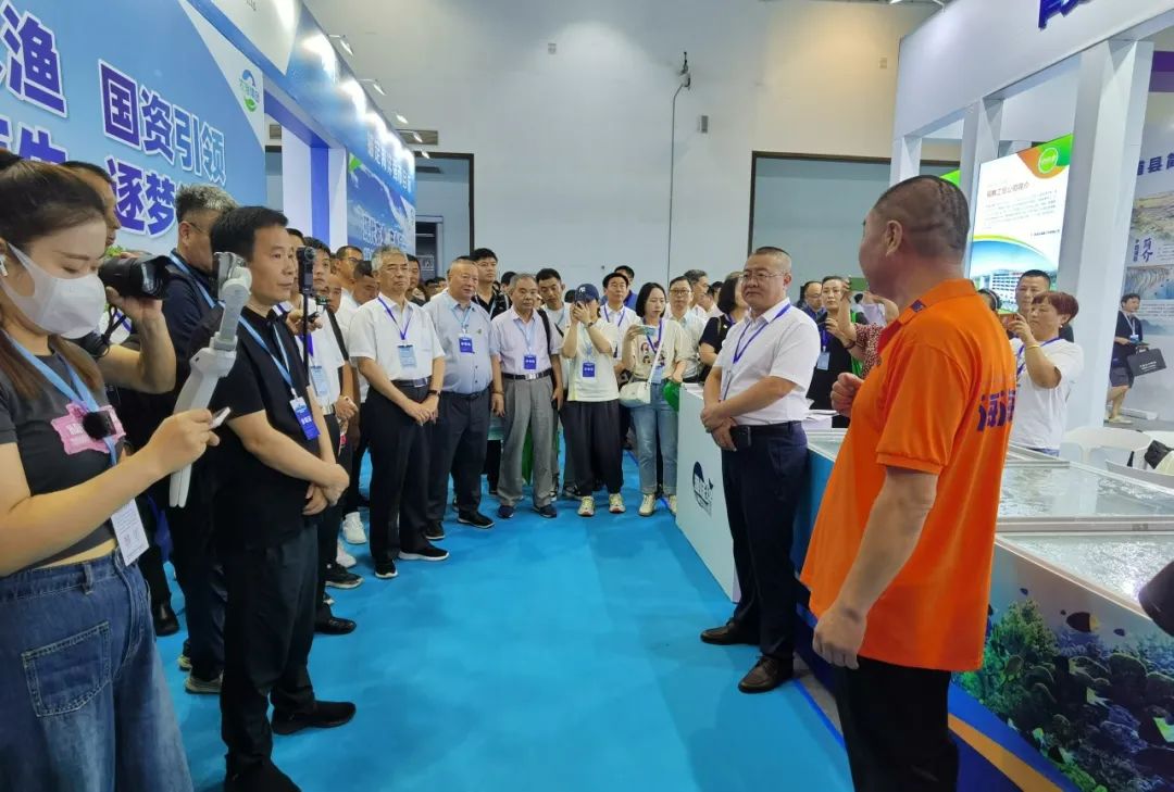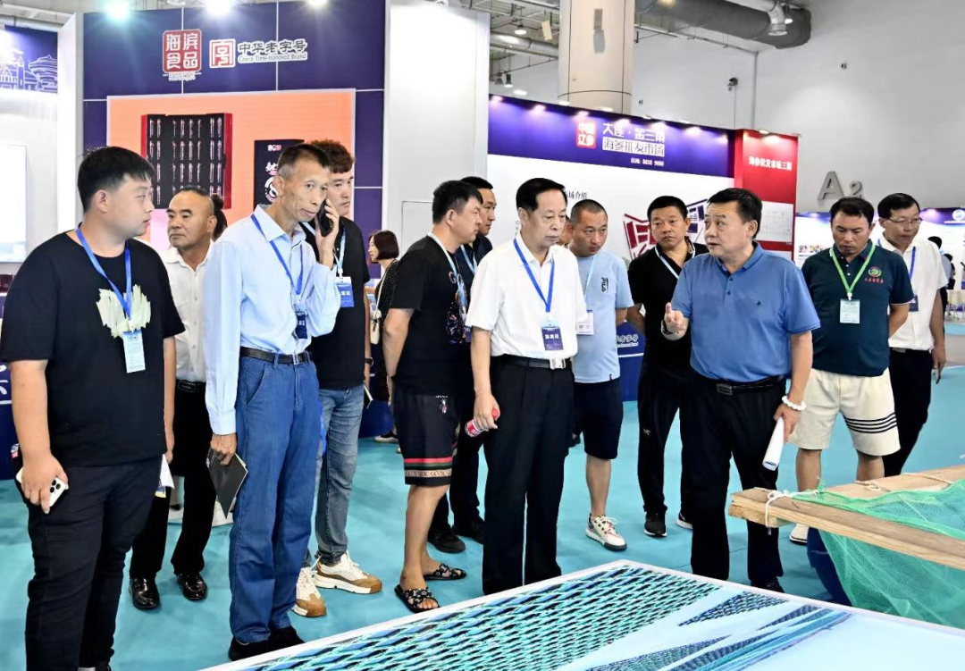 中国渔业协会赵兴武会长也来到了霞浦展区,听取工作人员介绍霞浦海参产品及产业发展情况,并给予充分肯定。