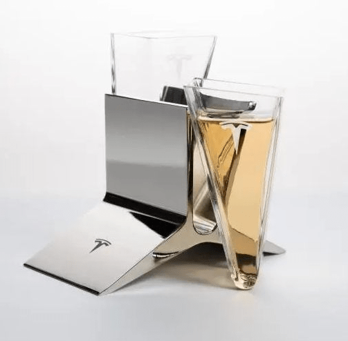 特斯拉中国官网还曾上线过限量版酒杯,整套包含玻璃杯和底座,售价490元。