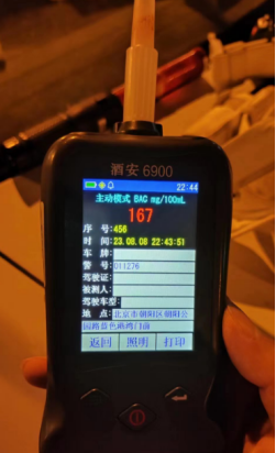 晚上10点40分,在朝阳公园路,一辆黑色小客车在临近交警夜查点时突然减速并靠边停车,民警上前对其进行检查。酒精初筛仪闪亮报警显示司机存在酒驾行为,司机龚某也承认自己在和朋友聚餐时喝了一杯啤酒。民警使用呼气式酒精检测仪对其进行进一步检测,结果让人吃惊,酒精检测仪显示数值为167mg/100ml,涉嫌醉酒后驾驶机动车。面对如此高的数值,就连在场交警也感到惊讶,一般只喝一杯啤酒是检测不出这么高数值的。在交警的追问下,直到进行抽血检测时,龚某此前所称的“一杯啤酒”加到“两杯”、“三杯”逐渐“加量”。经过抽血检测,龚某血液酒精检测结果为239.5mg/100ml。