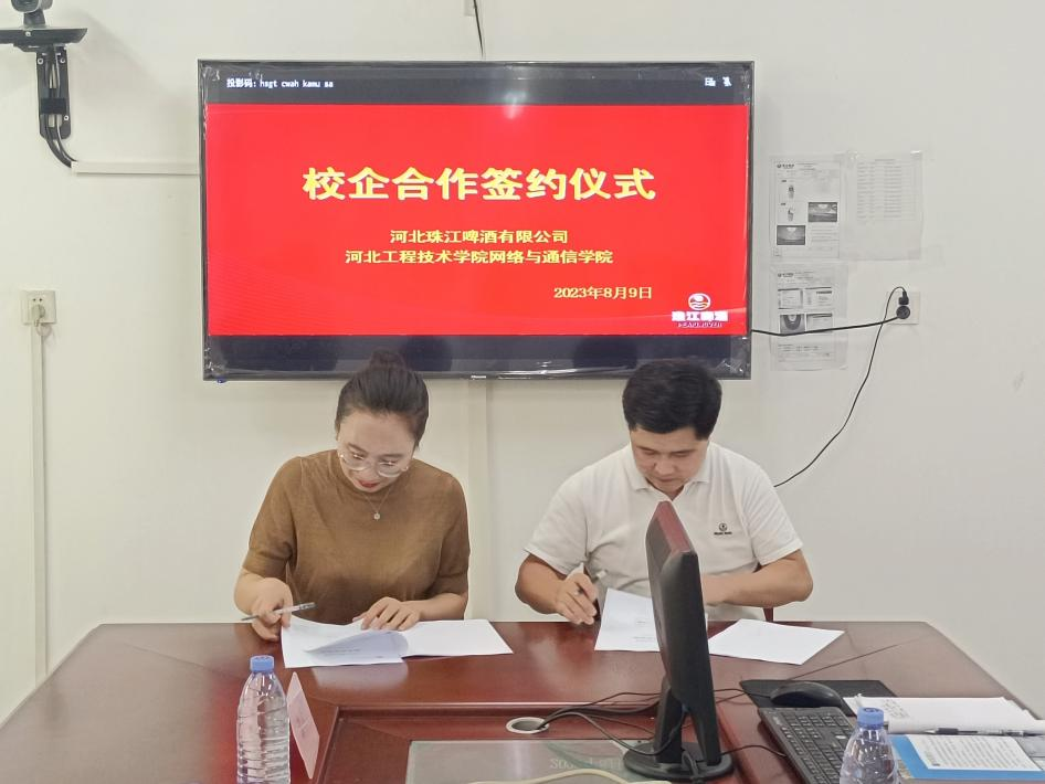 座谈会上,连婷院长对河北工程技术学院网络与通信学院的发展历史、专业建设以及校企合作的情况进行了介绍,表示希望与河北珠江啤酒有限公司建立起校企合作关系,完成网络与通信学院与该公司的人才对接。随后企业方代表党委副书记刘佳强介绍了该公司的发展历史、工资待遇以及招聘要求,并对建立校企合作平台表示赞同。随后双方签订校企合作协议并授牌。
