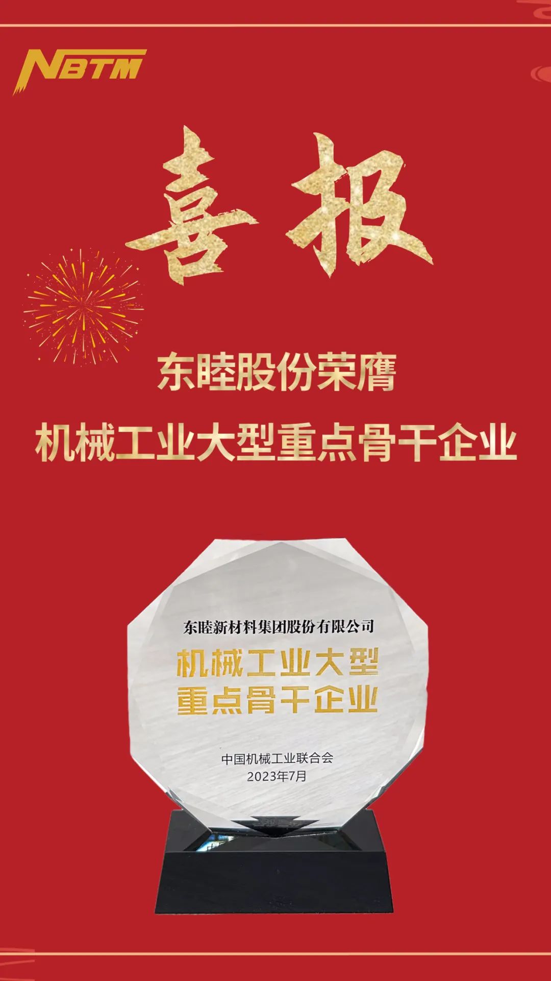 近日,由中国机械工业联合会、中国汽车工业协会共同主办的“2023年机械工业大型重点骨干企业发展论坛”在安徽芜湖召开。会上,东睦股份荣膺“机械工业大型重点骨干企业”。
