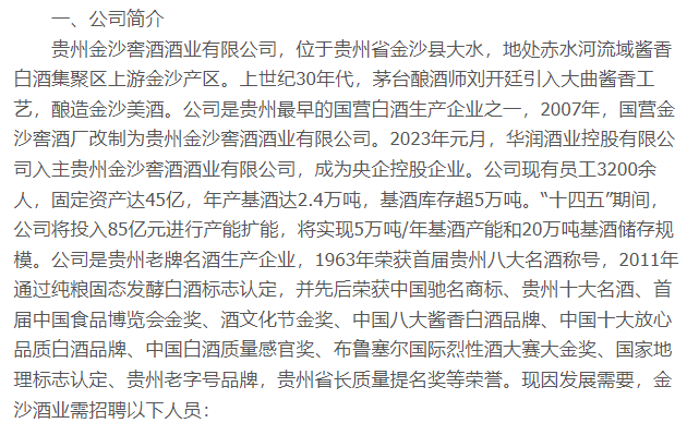 【国企】贵州金沙窖酒酒业招聘招聘12人!工资5000到8000元!赶紧转发给身边需要的人!