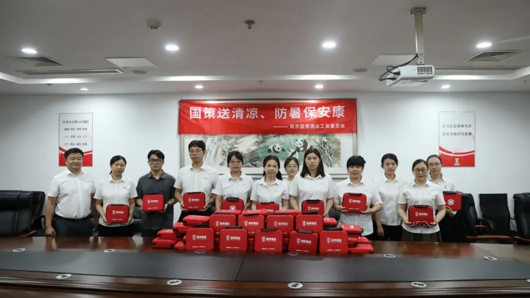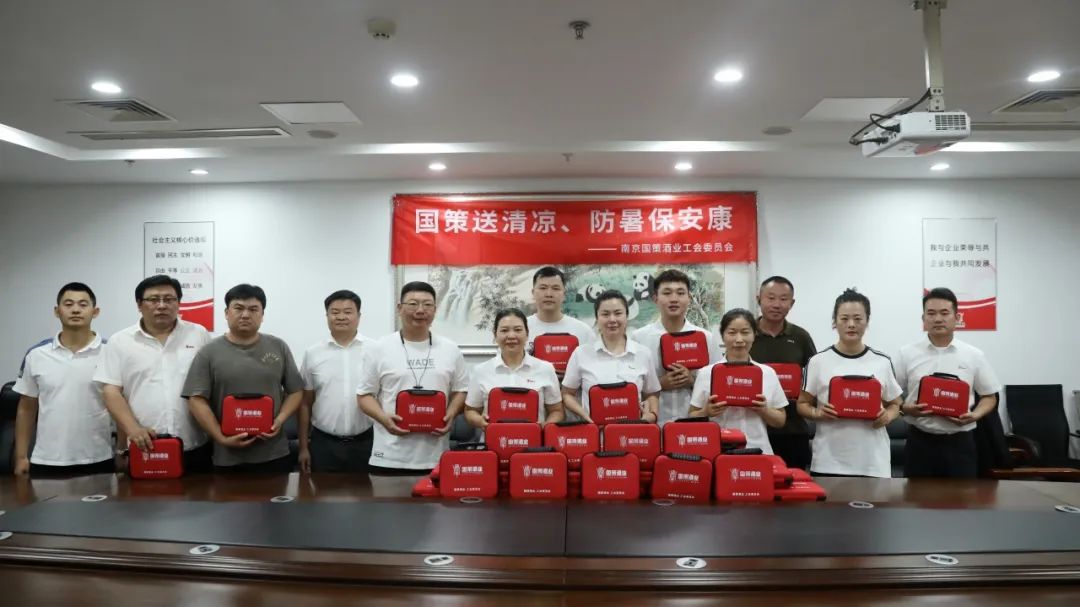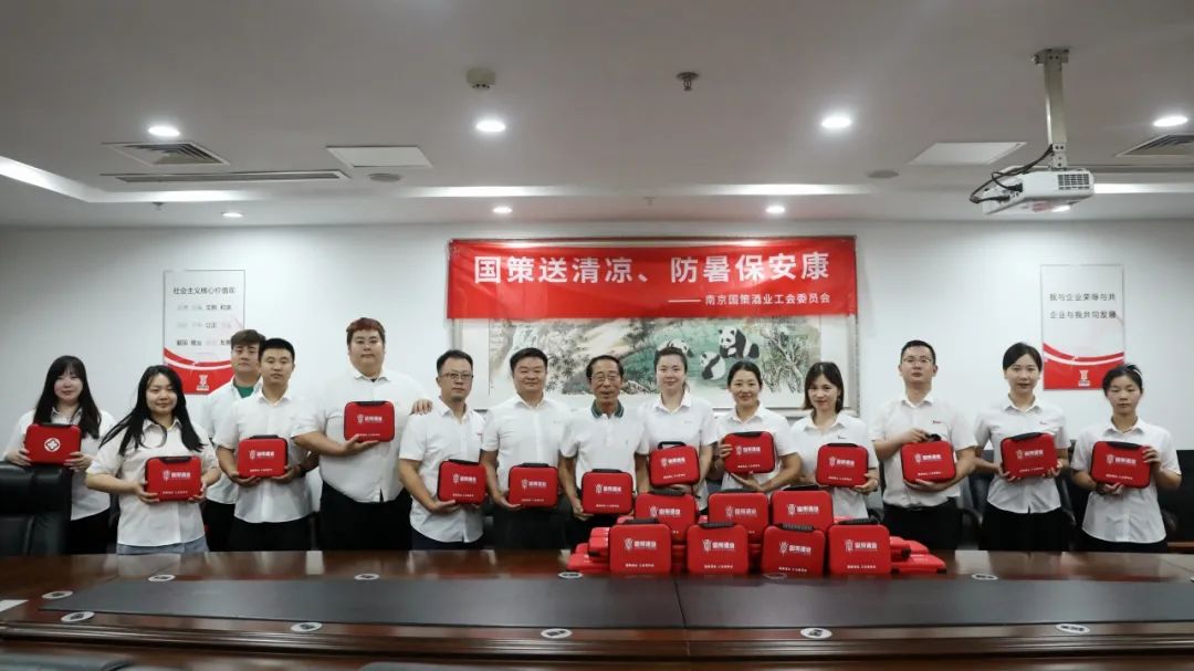 为做好高温季节防暑降温工作,维护广大职工劳动安全健康权益,传递公司对职工的关爱,南京国策酒业工会组织开展“国策送清凉 防暑保安康”慰问职工活动,公司董事长邹德运、党支部书记徐晓梅,工会主席乔樑、副主席陶夜为公司职工发放防暑降温包,并向全体职工送上清凉的问候。