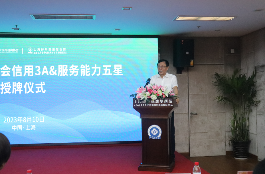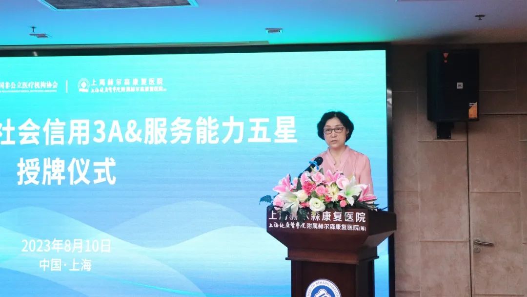 会上,上海市社会医疗机构协会副会长钟菊华,宣读关于我院国家行业评价的结果为:上海赫尔森康复医院获得国家行业评价信用与服务能力评价信用3A&服务能力五星。
