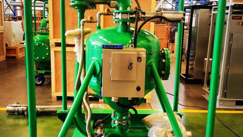 近日,河北冠能分离输送设备是有限公司一套岩心分离装置在厂完成调试,准备发往客户现场。该套系统将用于国内海洋地址勘探项目,在地址勘探施工中,气举反循环工艺是近几年来一直被反复谈论的施工方案,利用王钻杆内部释加压缩空气,将钻机钻取出来的地层岩心随着泥浆一同被反吹上来,但是在岩心的收集步骤一直是一个难以解决的问题,怎样能保证收集上来的岩心不破损和岩心与泥浆进行分离循环使用。针对这一问题,冠能携手国内某地址勘探设计院一同研发和设计此套系统,解决困难。