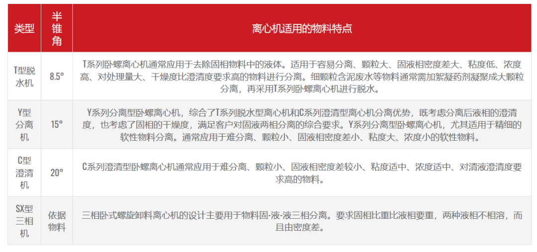 冠能不同类型卧螺离心机的特点