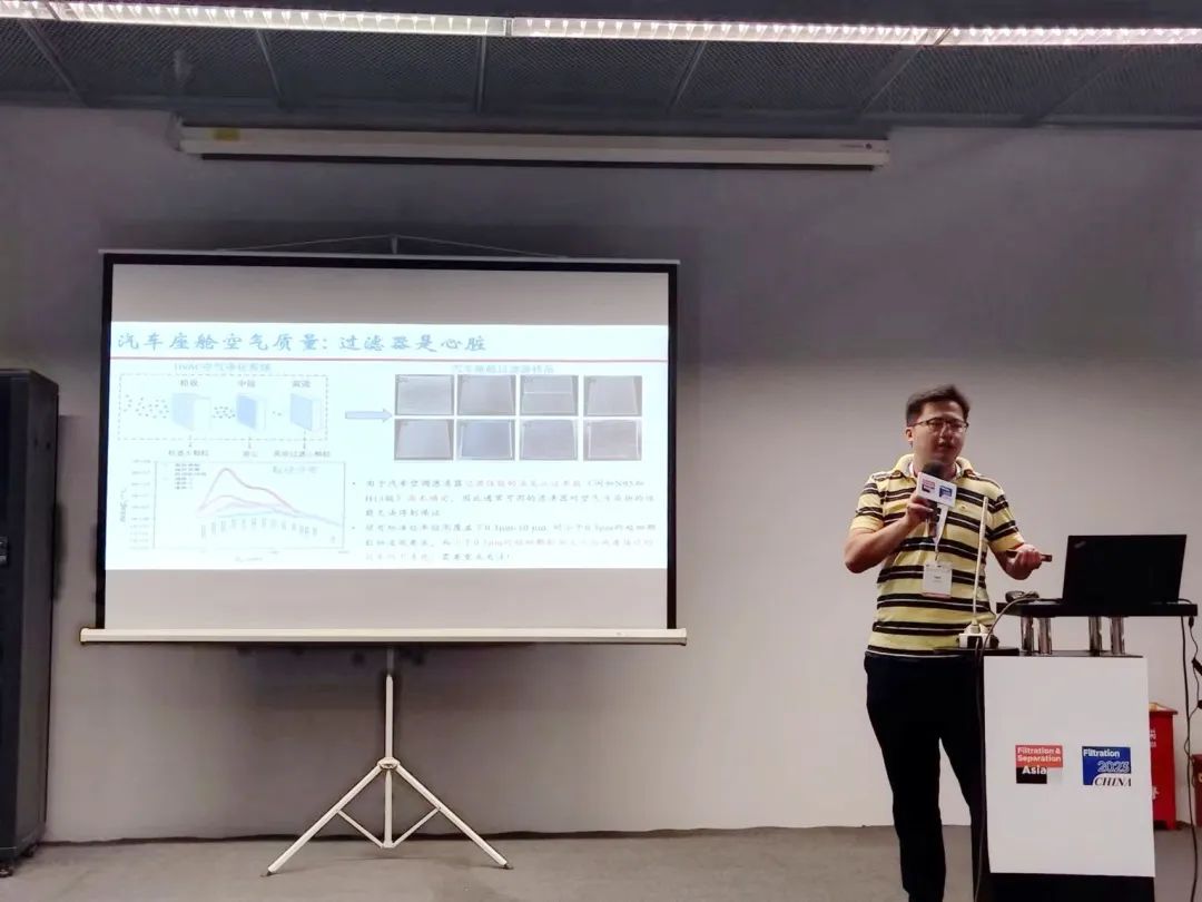 下午,苏信环境在展商产品技术推介会上,还进行了一场题为“汽车座舱空气过滤器性能评价方法和质量分级分析”的技术专题演讲。演讲内容获得了到场观众的高度认可。现场,我们还与观众进行了互动,回答了他们关于过滤与分离技术的问题。这种交流和互动为我们提供了一个了解行业需求和趋势的机会,同时也加深了我们与客户和合作伙伴之间的联系。