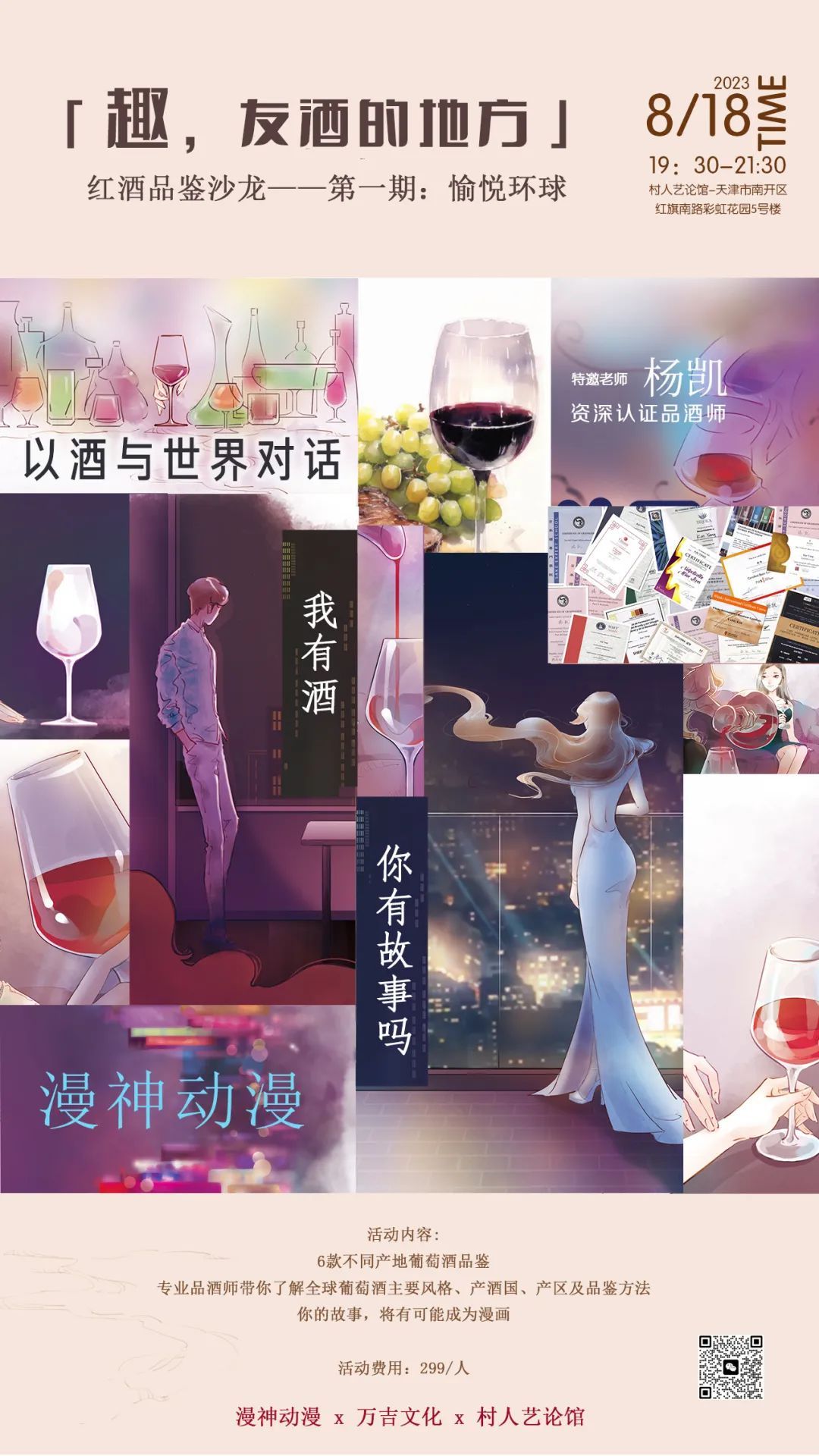 来参加红酒品鉴沙龙的朋友们,欢迎以各种形式分享将您的一段故事与我们分享,我们会根据您的故事素材,由专业编剧、漫画家量身定制漫画作品/插画作品,欢迎嘉宾们交流分享,记忆中定格的时光~