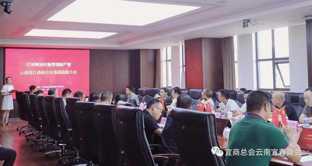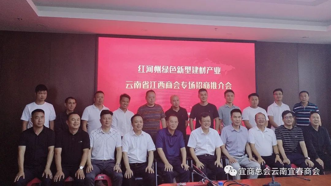 我会受邀参加由红河州绿色新型建材产业链专班主办,云南省江西商会承办的红河州绿色新型建材产业专场推介会,政企双方就进一步深化合作交流对接,共叙情谊、共谋共商高质量发展。2023年8月9日下午14:30-17:30,我会执行会长舒雄、王永庚,副会长杨军,理事裴伟涛,会员唐华祖、熊祖贤、熊大强、徐国军等代表宜商总会云南宜春商会出席本次活动。