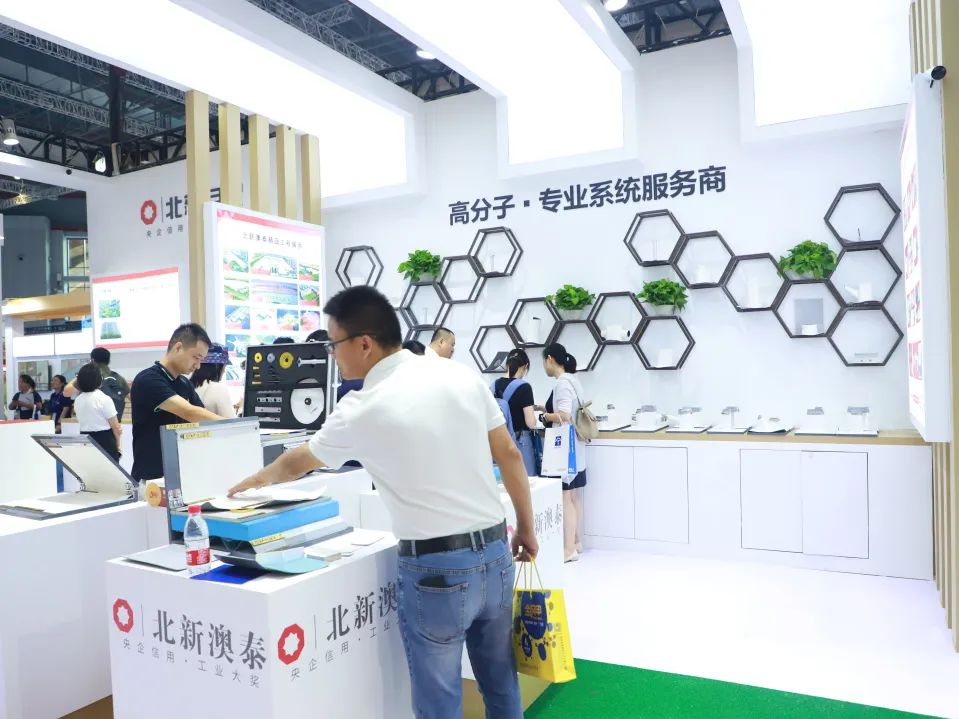 北新防水作为参展央企,在展区设置两个展位共300余平方米的展厅,为总展位面积最大的参展商。展示内容分为企业介绍、智慧系统及特色产品等主题,设置了特色产品专区、高分子专区、轨道交通系统专区、塑胶跑道/地坪系统专区,展示包括BNA-302水性喷涂持粘高分子防水涂料、PAS-1000 非沥青自粘防水卷材、α-硅烷改性聚合物防水涂料、单层防水保温屋面系统等在内的10余款特色产品和解决方案。多角度、全方位、立体化向外界呈现了北新防水在行业内的核心优势和在智慧防水方面的实践探索和丰硕成果。展会期间,北新防水展位吸引来自世界各地的防水专家、企业高管、学者、厂家、行业同仁莅临参观交流。