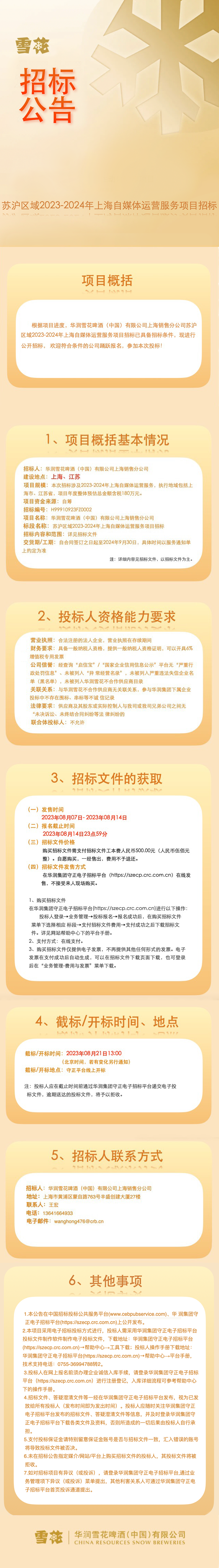 招标公告|华润雪花啤酒苏沪区域2023-2024年上海自媒体运营服务项目