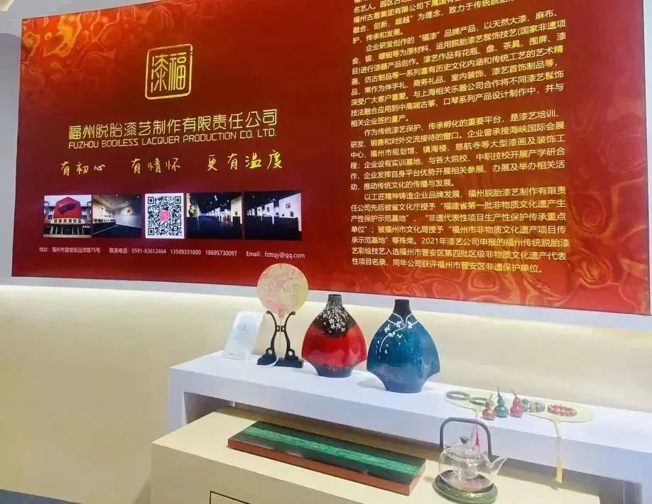 福州脱胎漆艺制作有限责任公司、福州漆艺术研究院有限公司作为作为漆艺培训、研发、销售和对外交流接待的平台,致力于大漆文化的传承及“福漆”文化的推广,对外承接大漆工艺礼品定制、各类展览、培训讲座、活动策划、研学、文化艺术交流等服务。商务合作联络人: