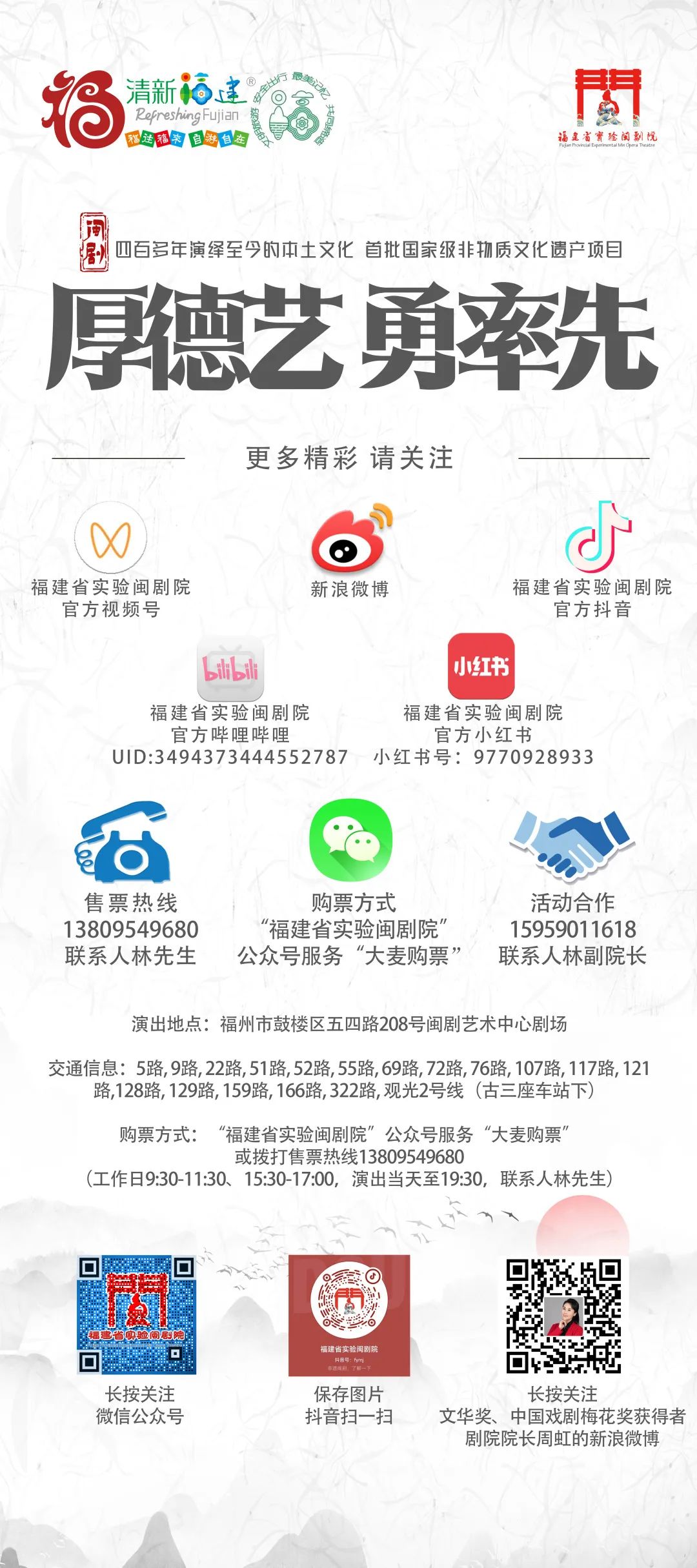 我院受邀至厦门参加由中共中央台办、文化和旅游部、国家广播电视总局、福建省人民政府主办,厦门市人民政府、台湾亚太文化创意产业协会承办的第十四届海峡两岸(厦门)文化产业博览交易会。围绕着福建省文化旅游品牌馆“海丝起点 清新福建”的主题,我院创排了多种创新型闽剧沉浸式演出——戏歌《七溜八溜·不离福州》、沉浸式情景闽剧《白蛇传》、情景舞蹈《古厝情》、笛子古筝合奏《大鱼》大鱼海棠等,从8月4日至8月7日,每日上午、下午于福建省文化旅游品牌馆向两岸参观群众展示400年非遗闽剧的独特魅力,助力两岸文化交流,推动探索两岸融合发展新路。