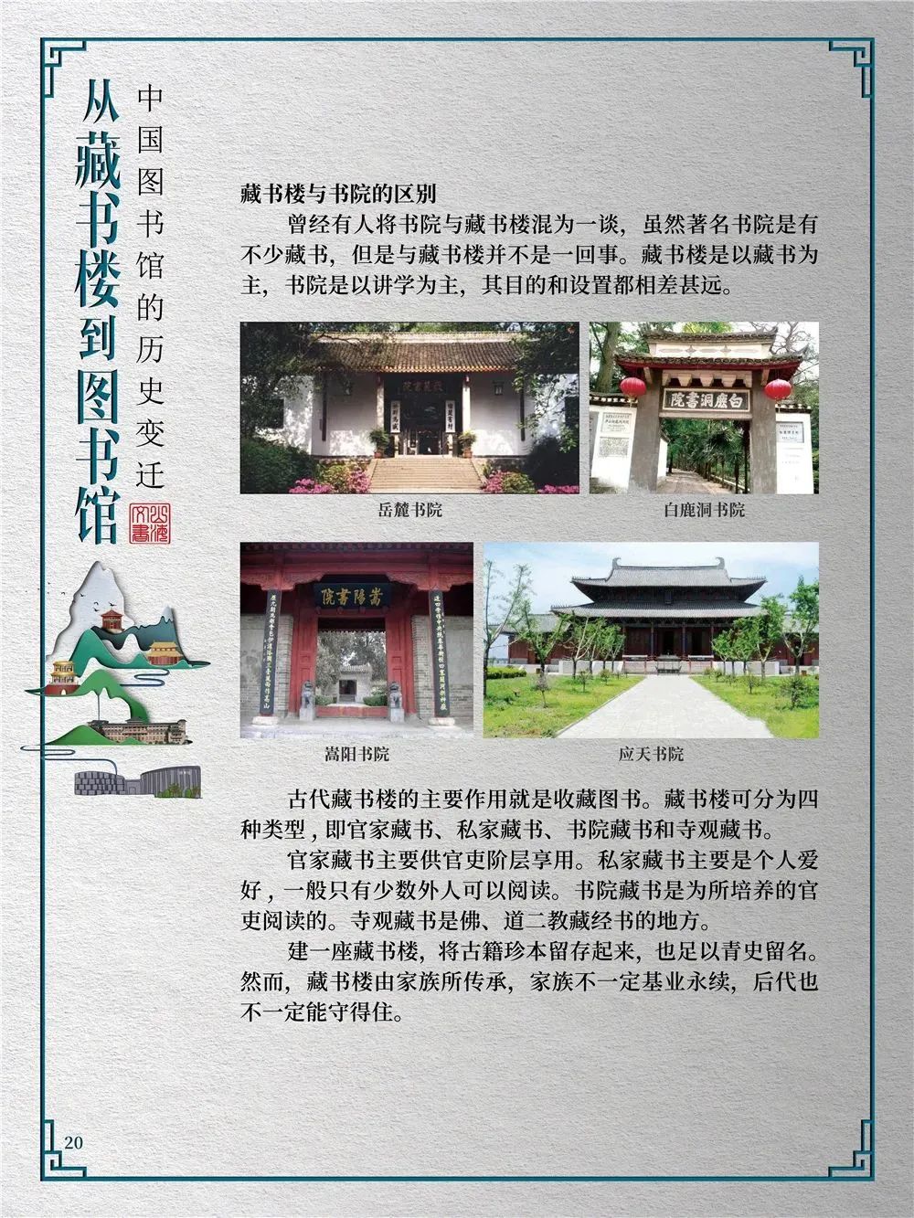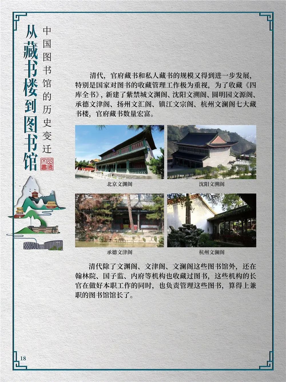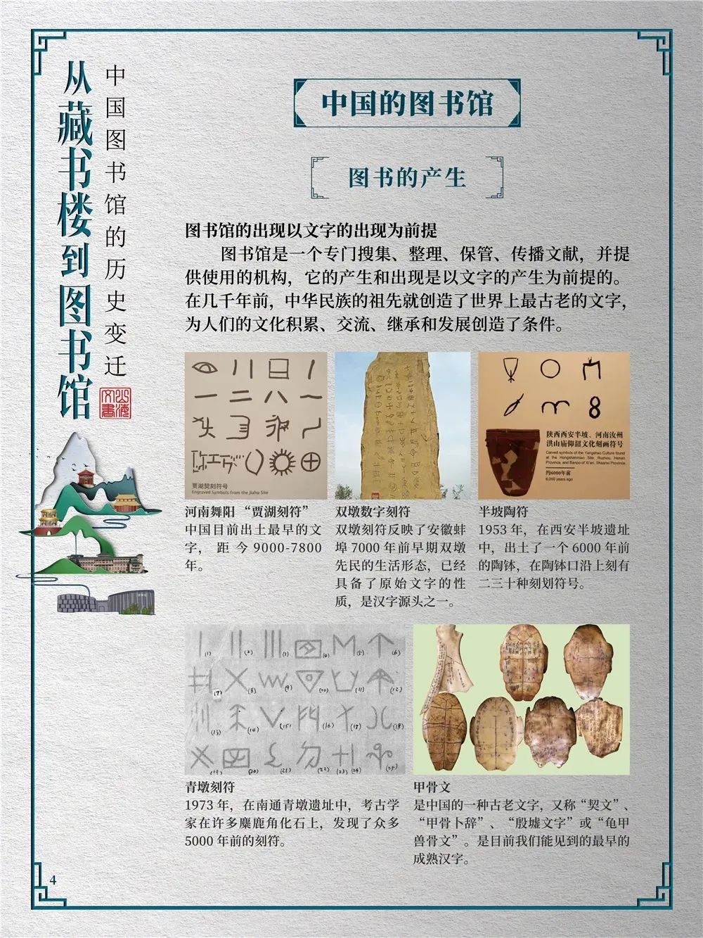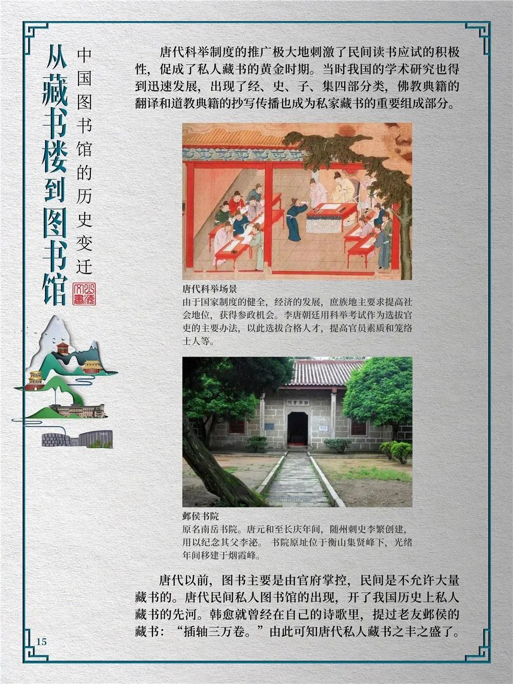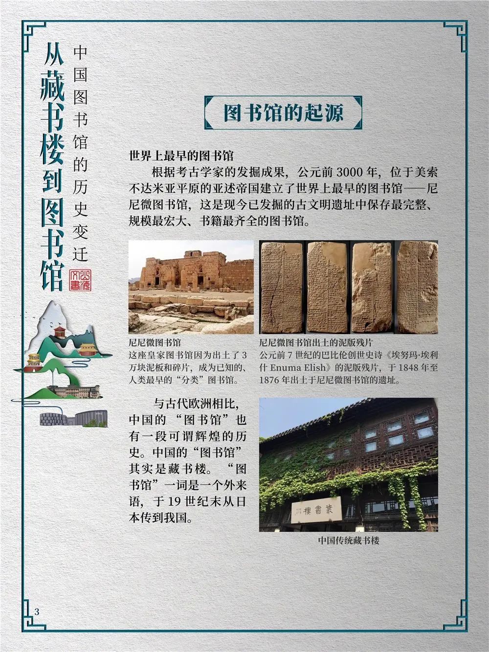 为此,莲池区图书馆举办“从藏书楼到图书馆——中国图书馆的历史变迁”展览,用图文并茂的方式同读者们一起探寻中国图书馆从古至今的发展轨迹,揭示华夏文明历经五千年风雨而延绵至今的文化基因。